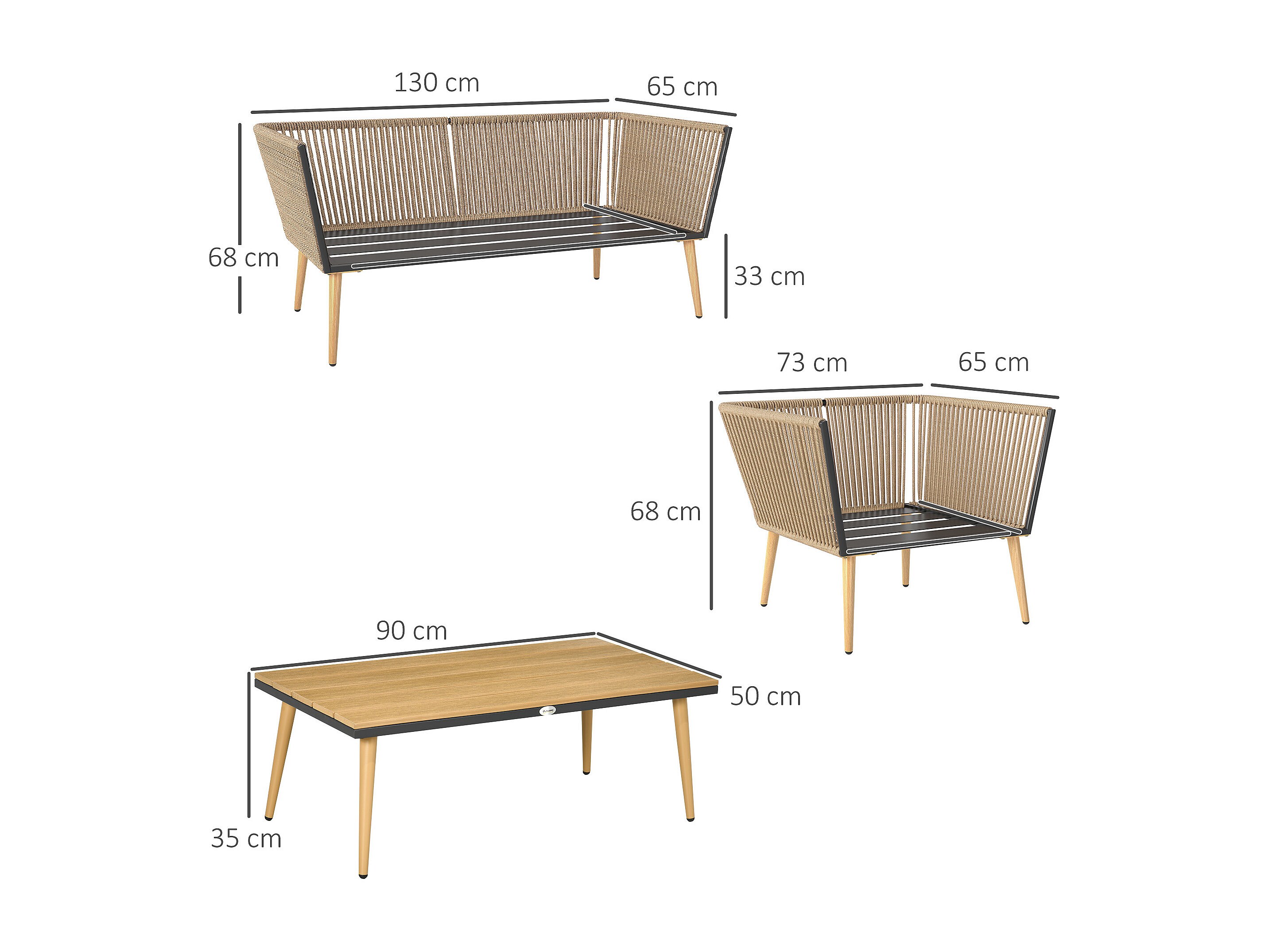 Salon de jardin 4 places 4 pièces design scandinave acier époxy résine filaire PE coussins inclus crème