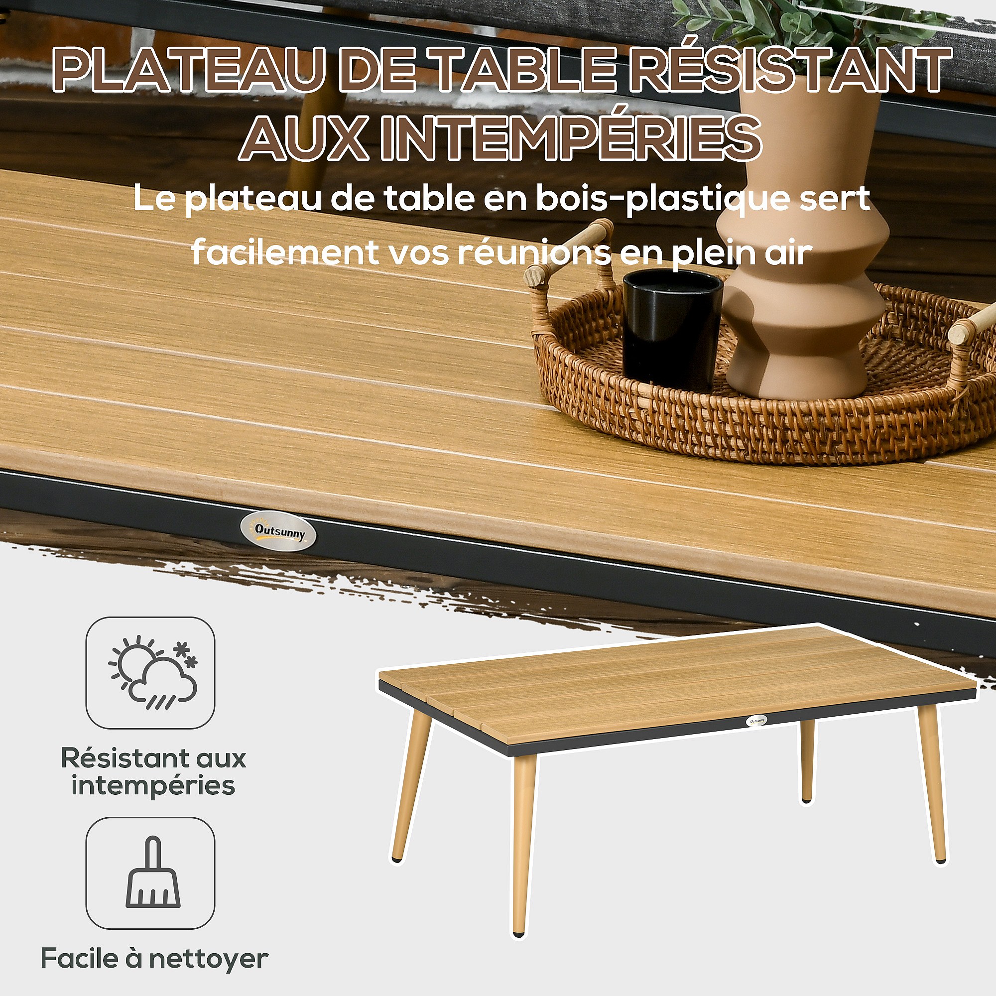 Salon de jardin 4 places 4 pièces design scandinave acier époxy résine filaire PE coussins inclus gris