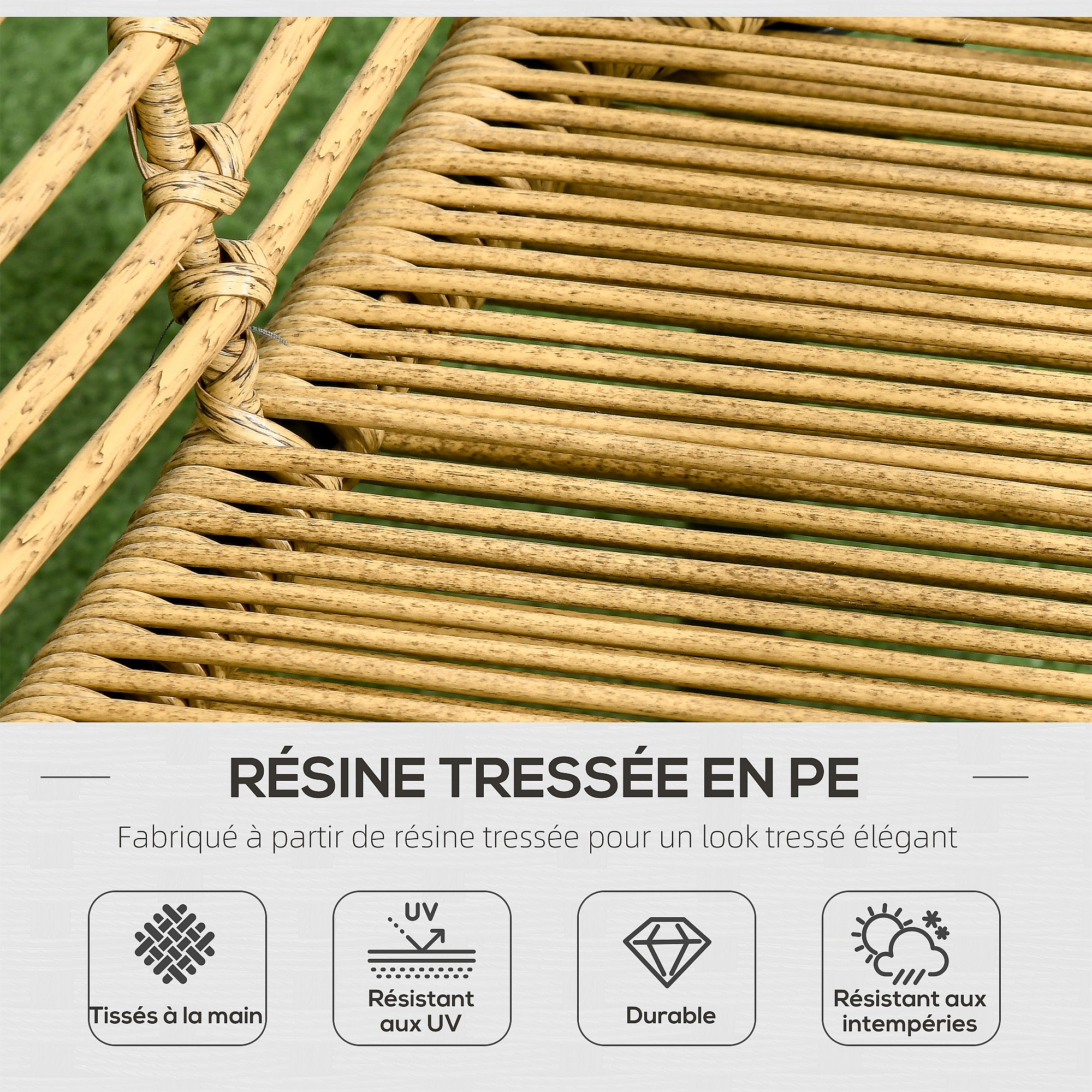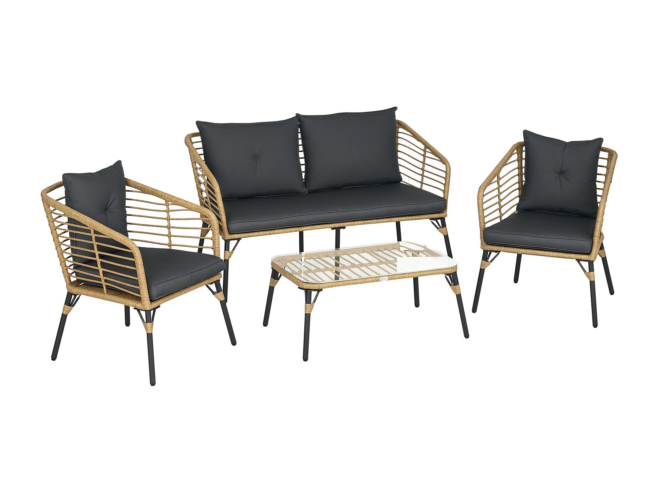 Salon de jardin 4 places 4 pièces style colonial table basse coussins gris fournis résine tressée aspect rotin