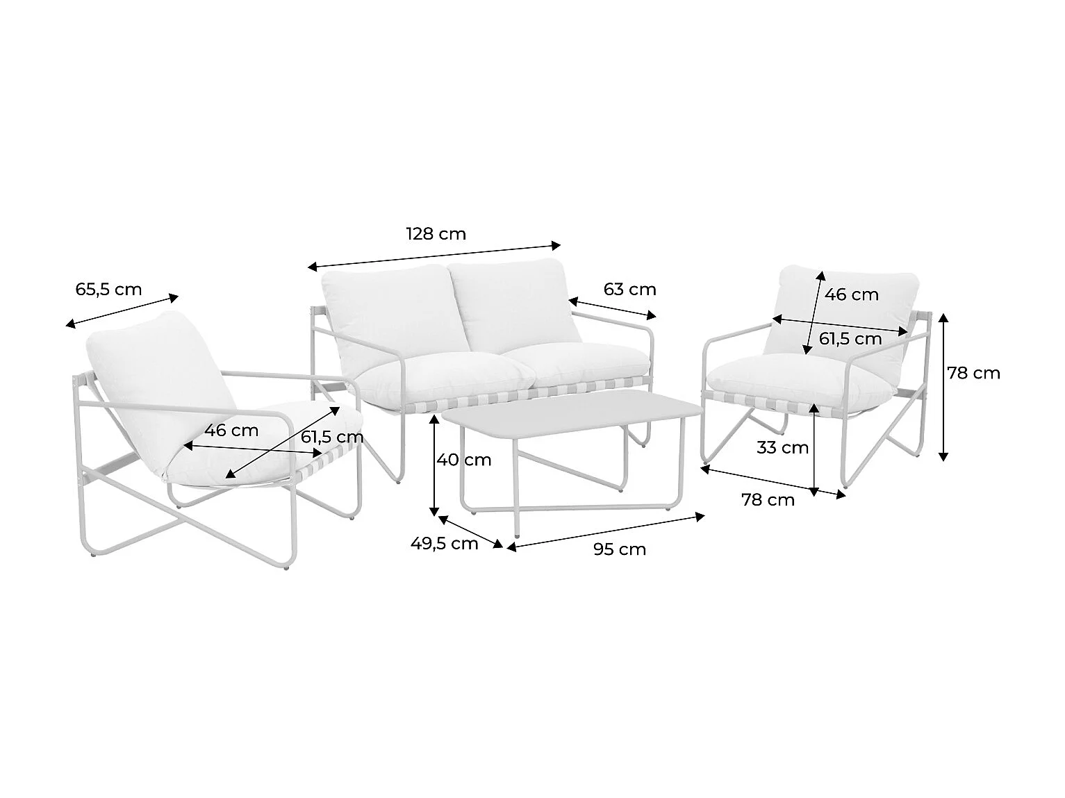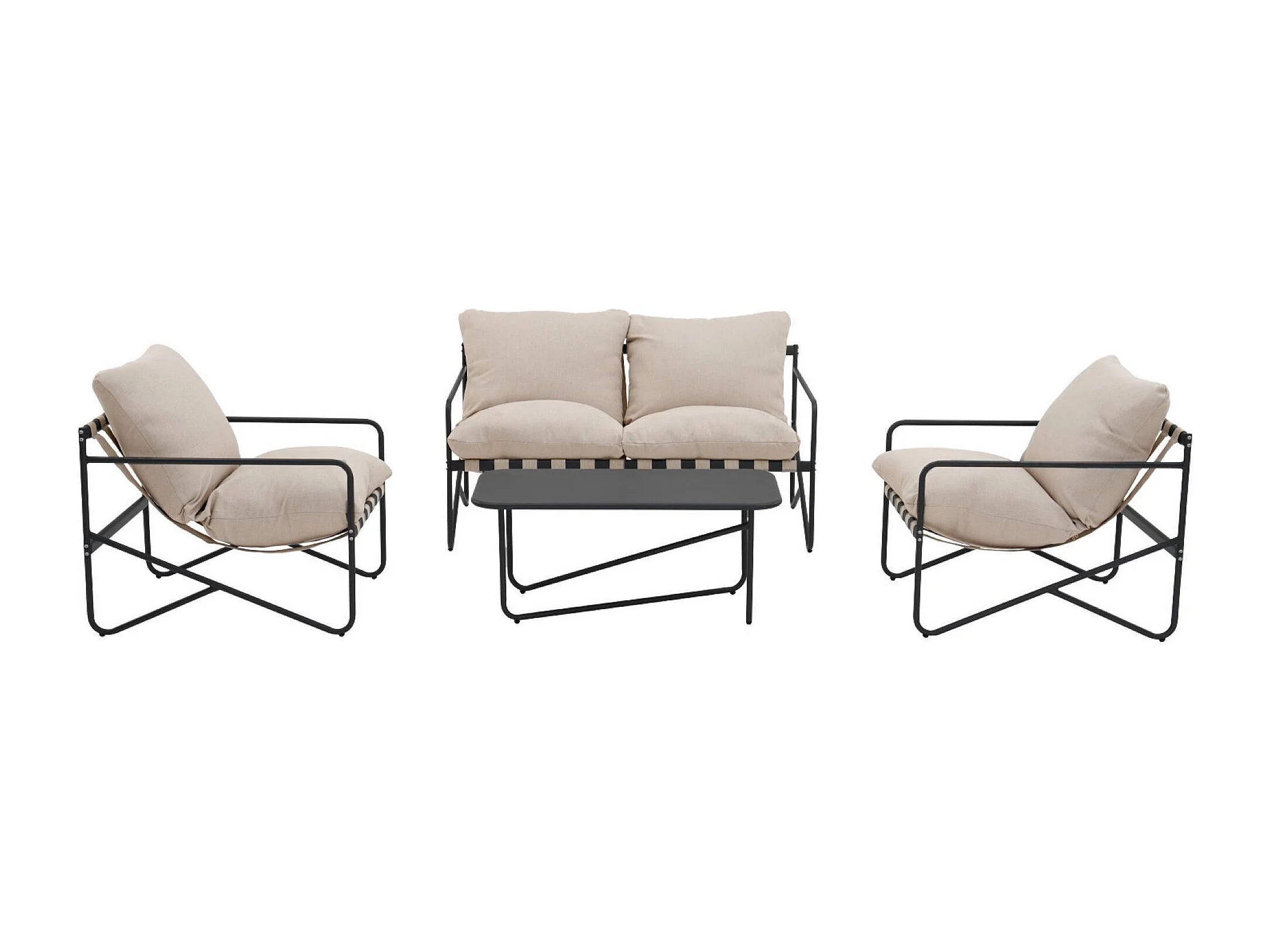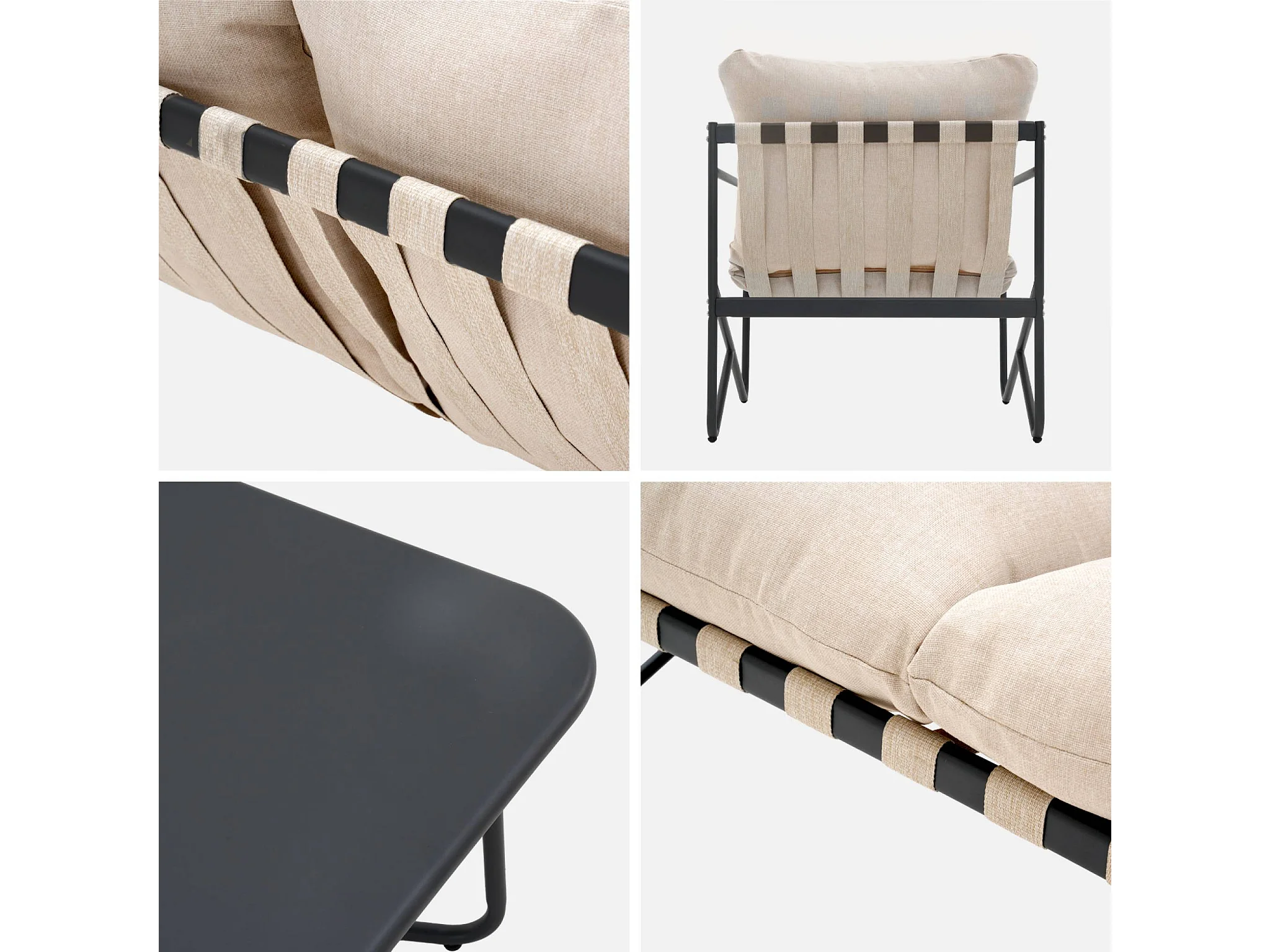 Salon de jardin 4 places avec table en métal. avec des sangles. anthracite