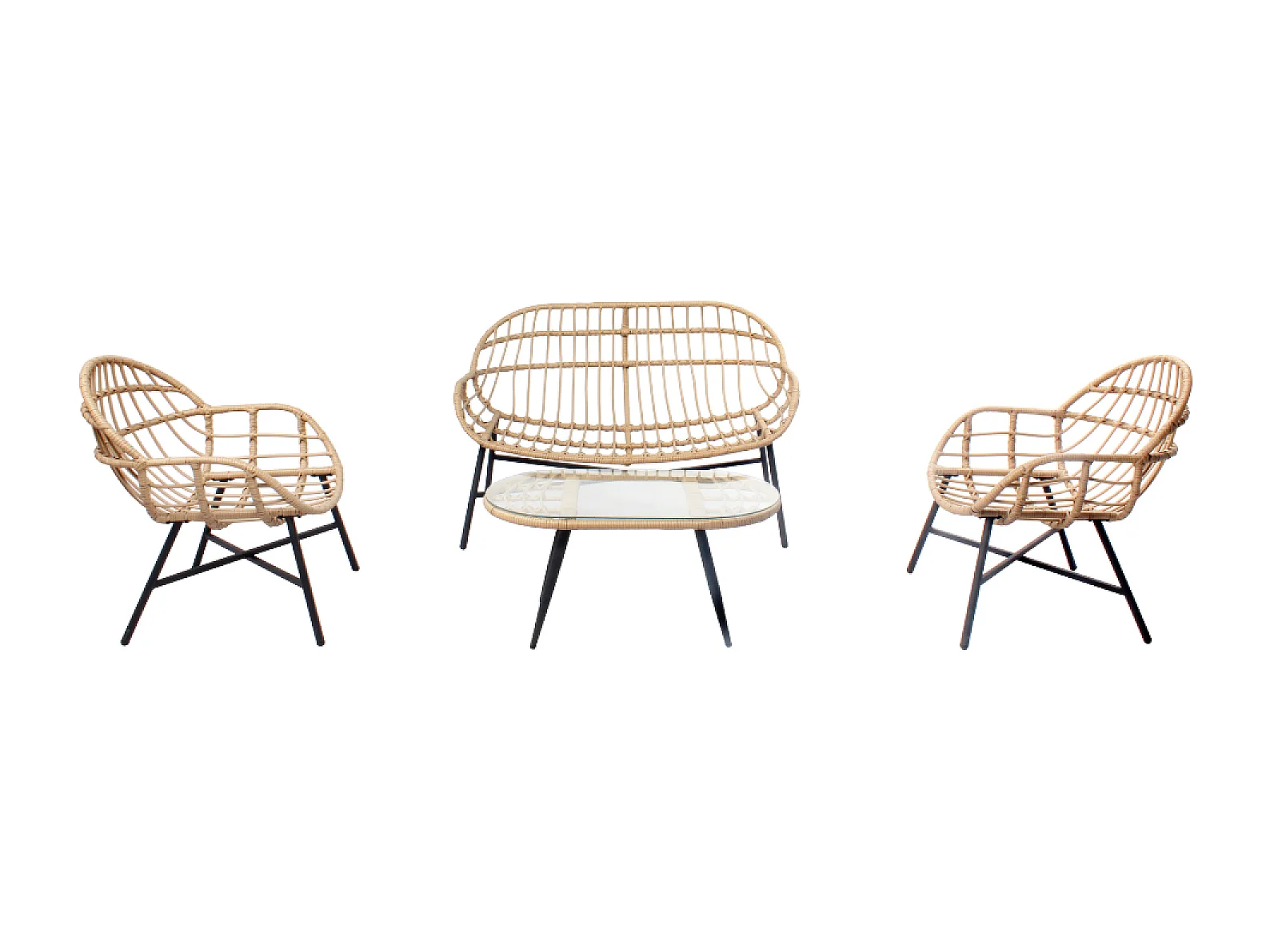 Salon de jardin 4 places canapé + fauteuils beige EVORA