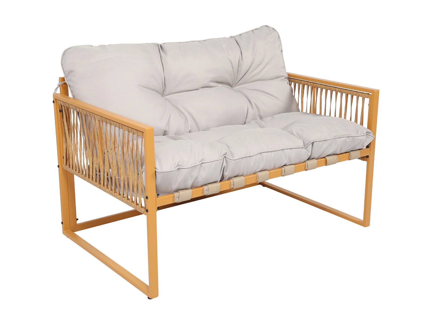 Salon de jardin 4 places effet rotin coussins gris clair TURINI
