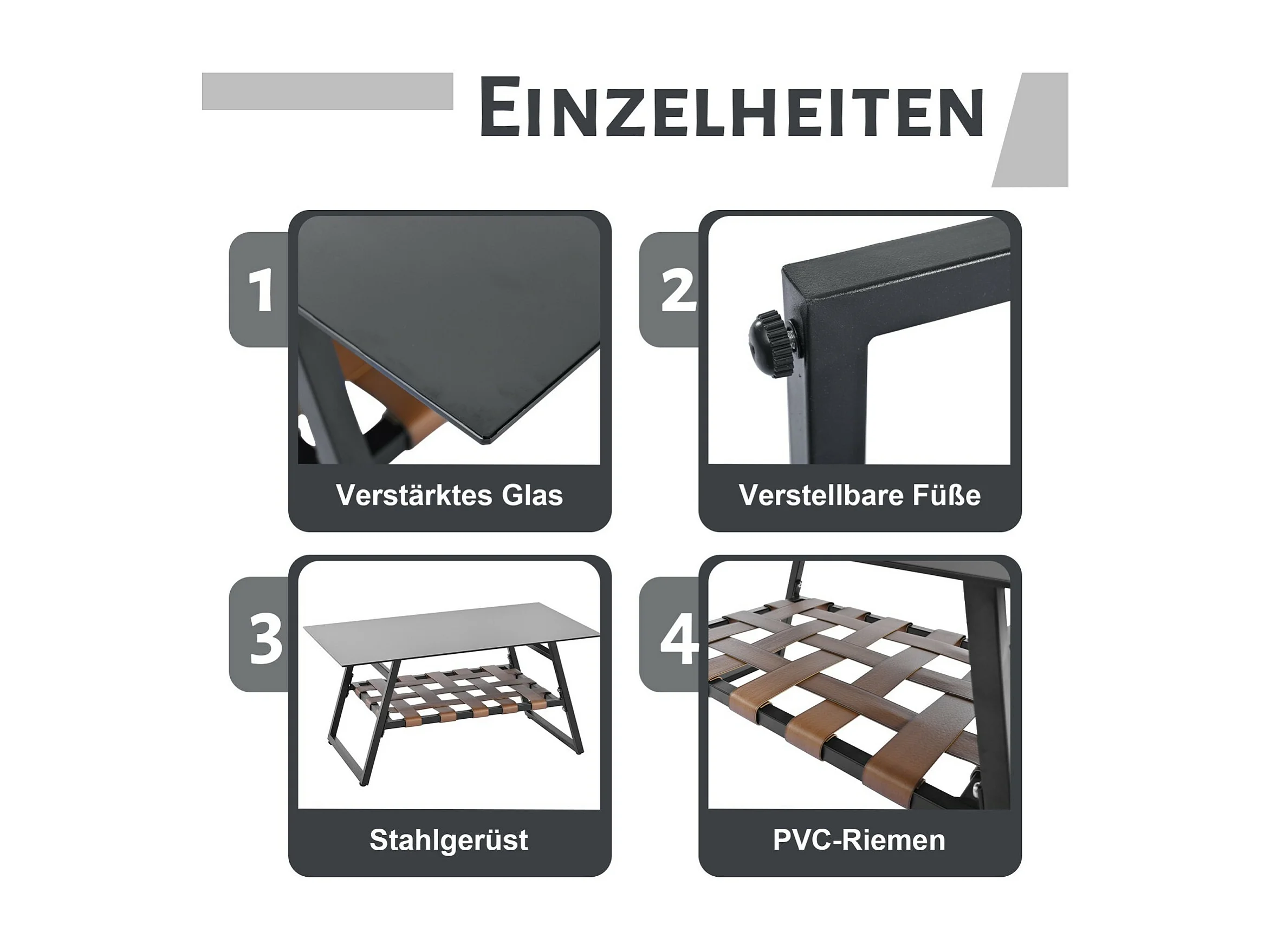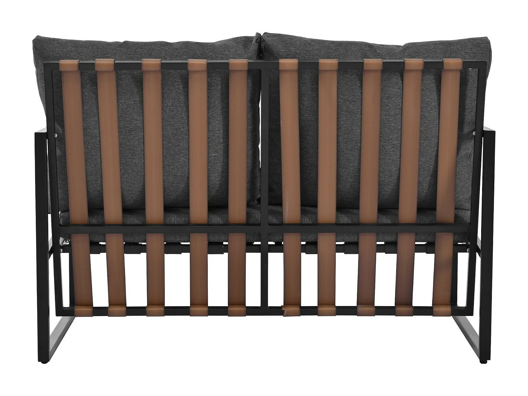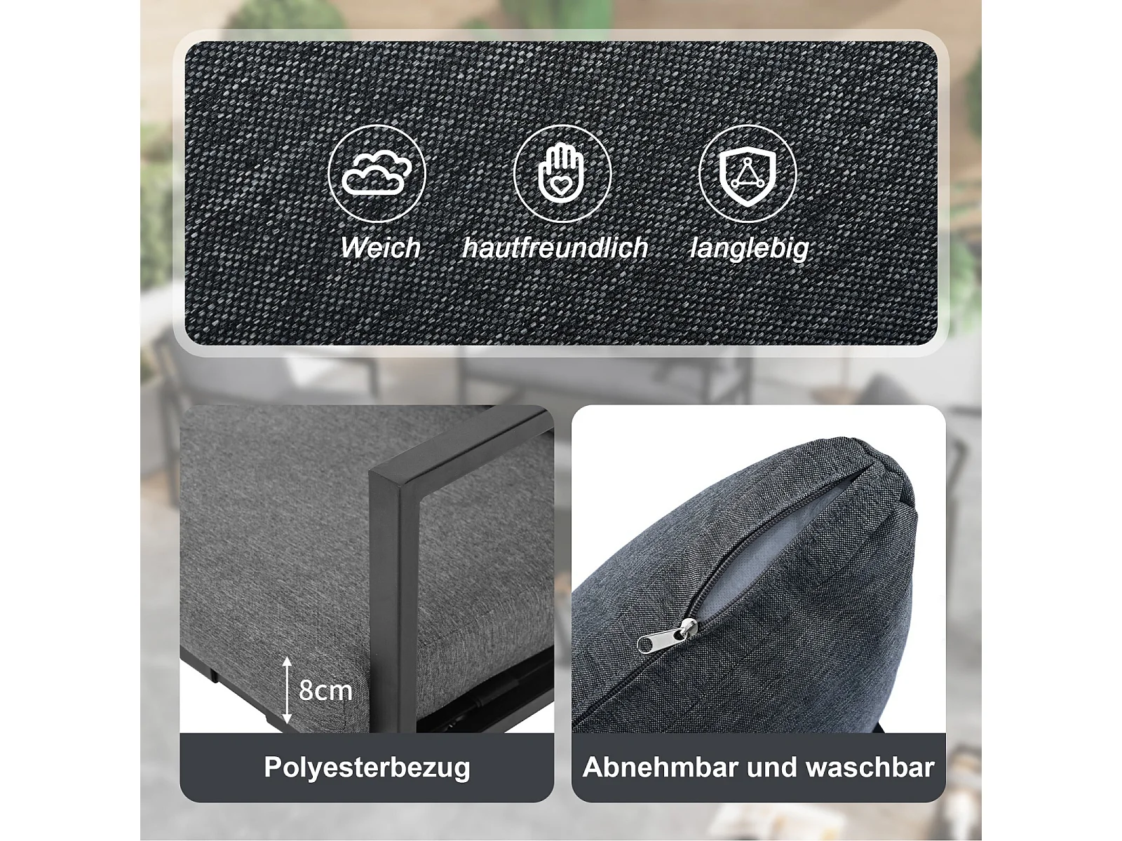 Salon de jardin 4 places en acier galvanisé, 1 canapé, 2 fauteuils et table basse avec couche de stockage