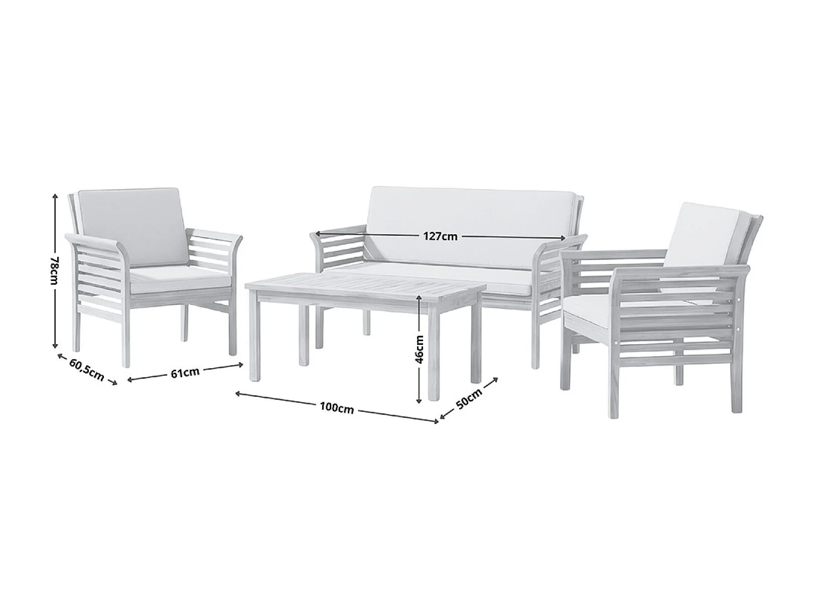 Salon de jardin 4 places en acacia KAMPOT
