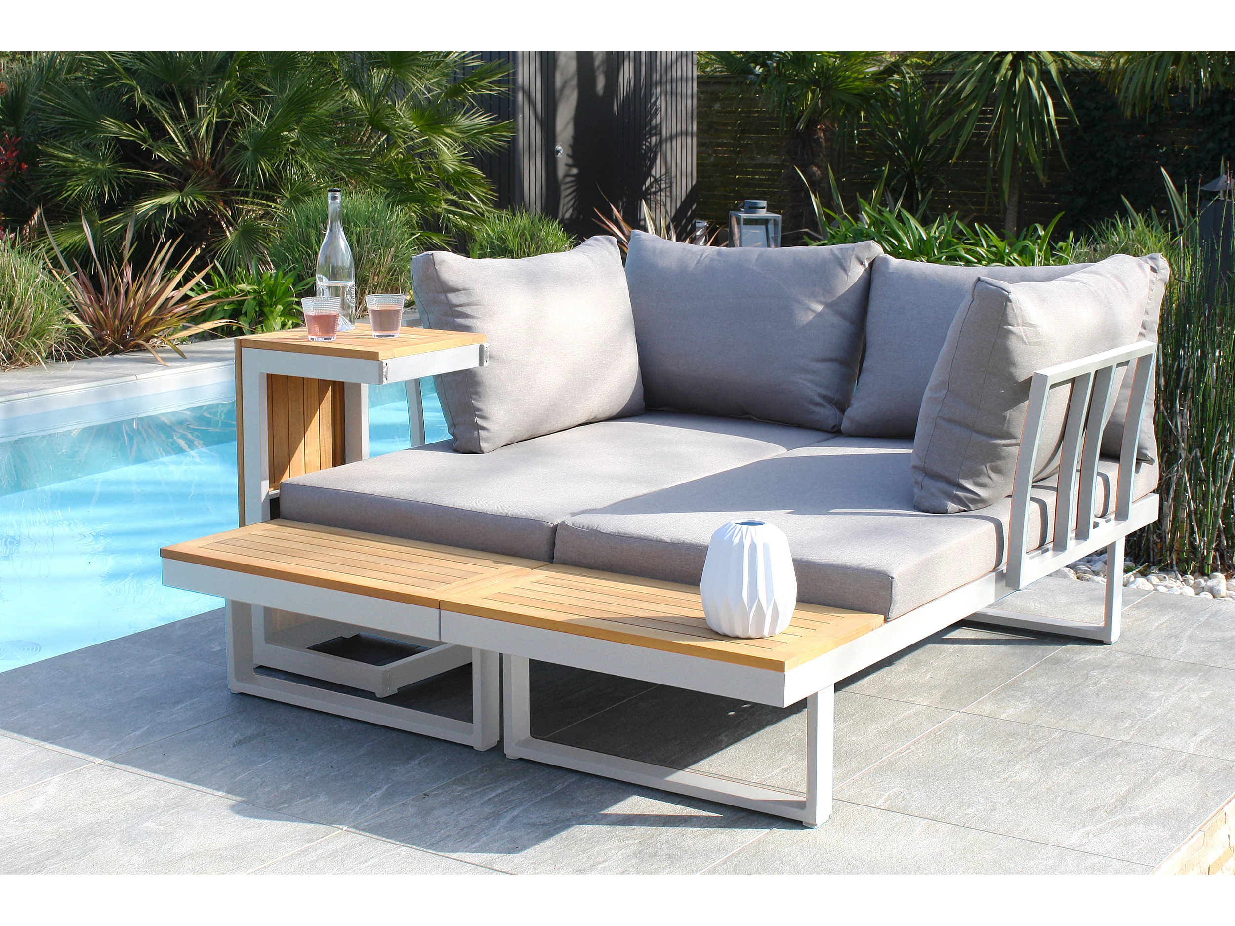 Salon de jardin 4 places en bois d'acacia et aluminium - TOKYO