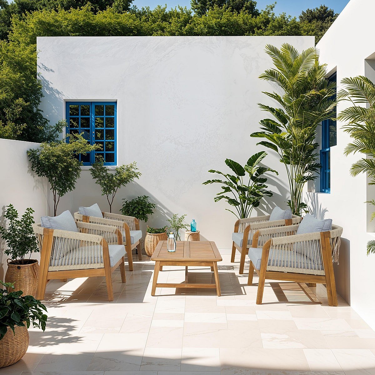 Salon de jardin 4 places en bois FSC - 4 fauteuils et table basse - Symi