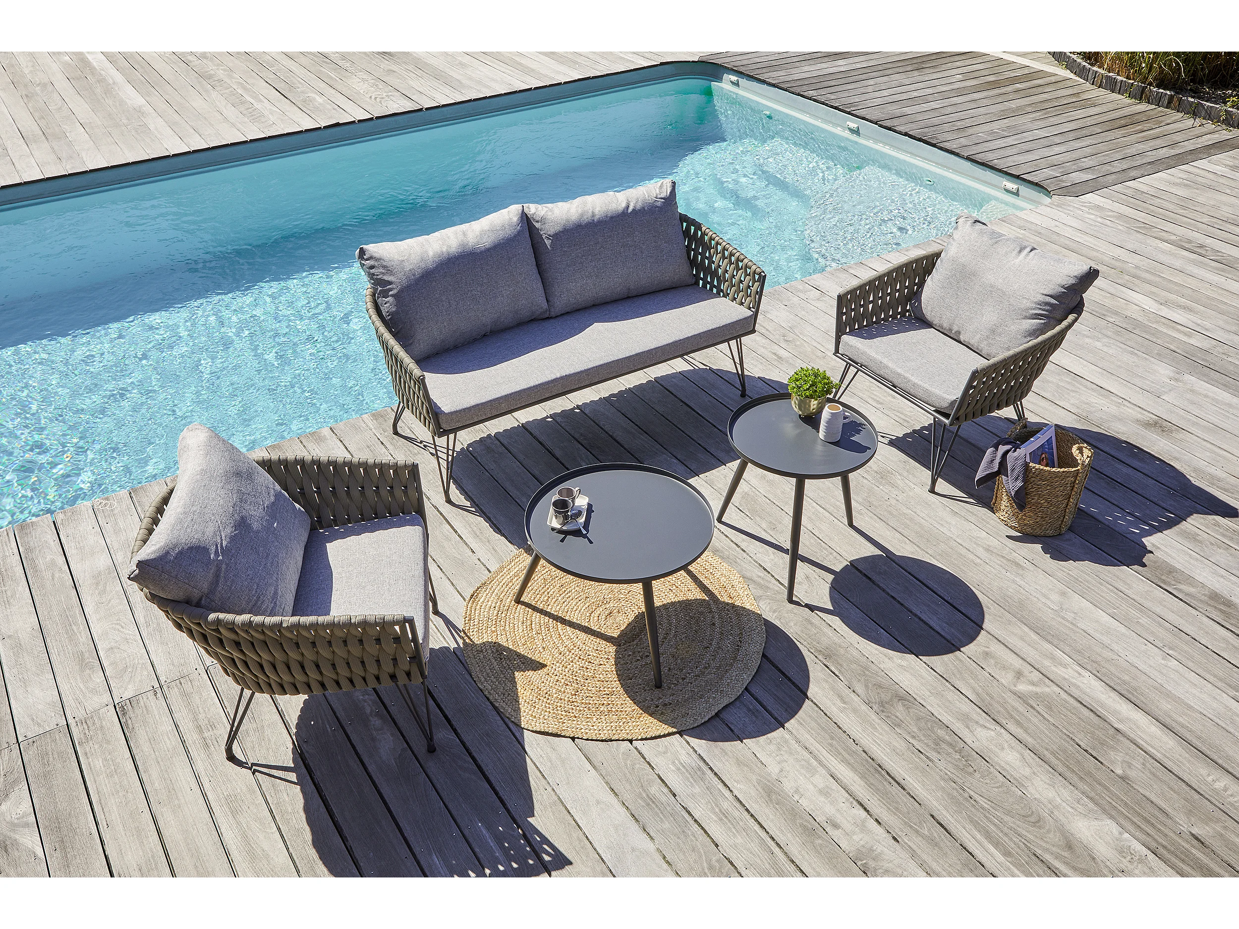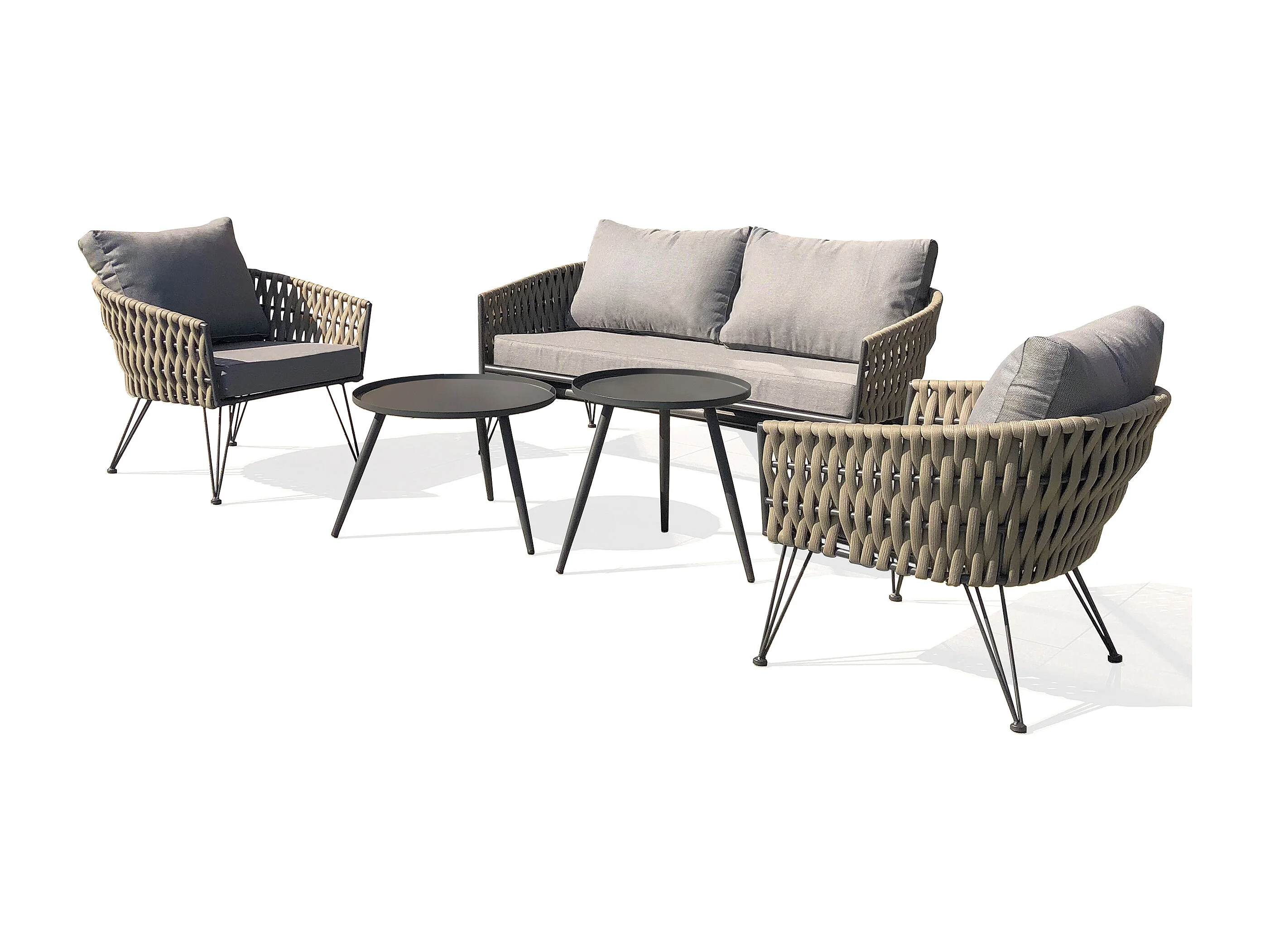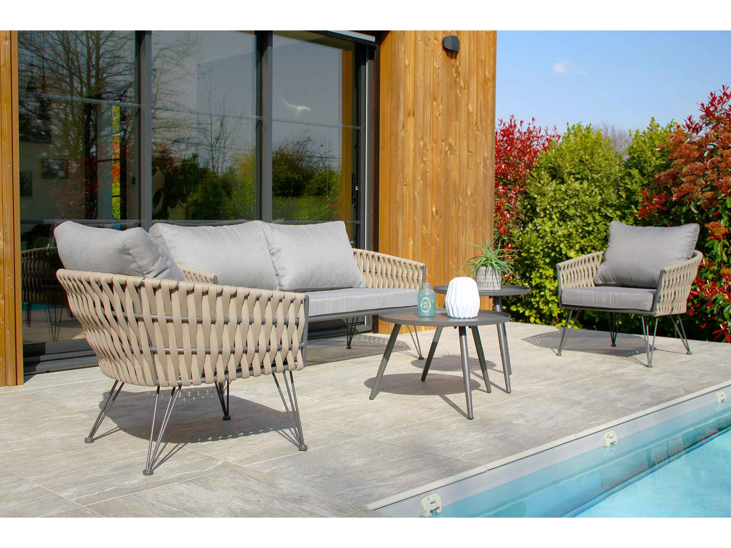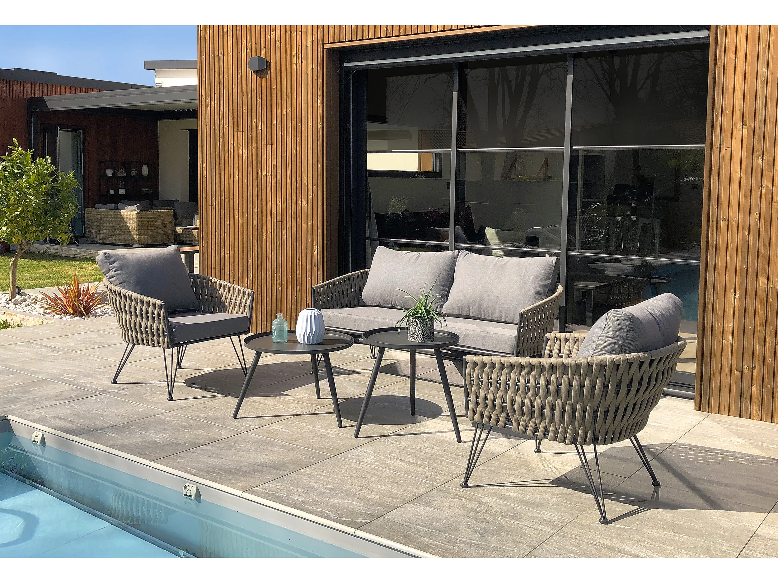 Salon de jardin 4 places en corde tissée et acier - CAPRI