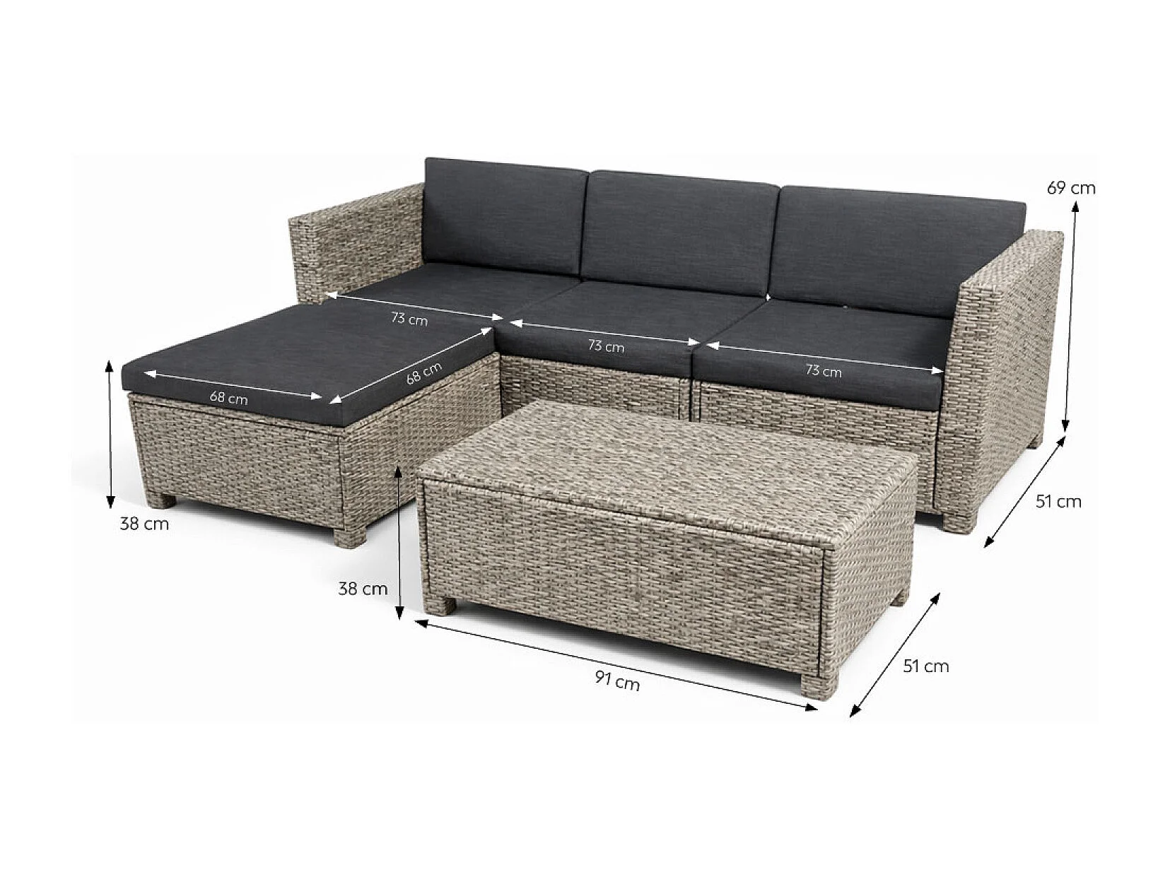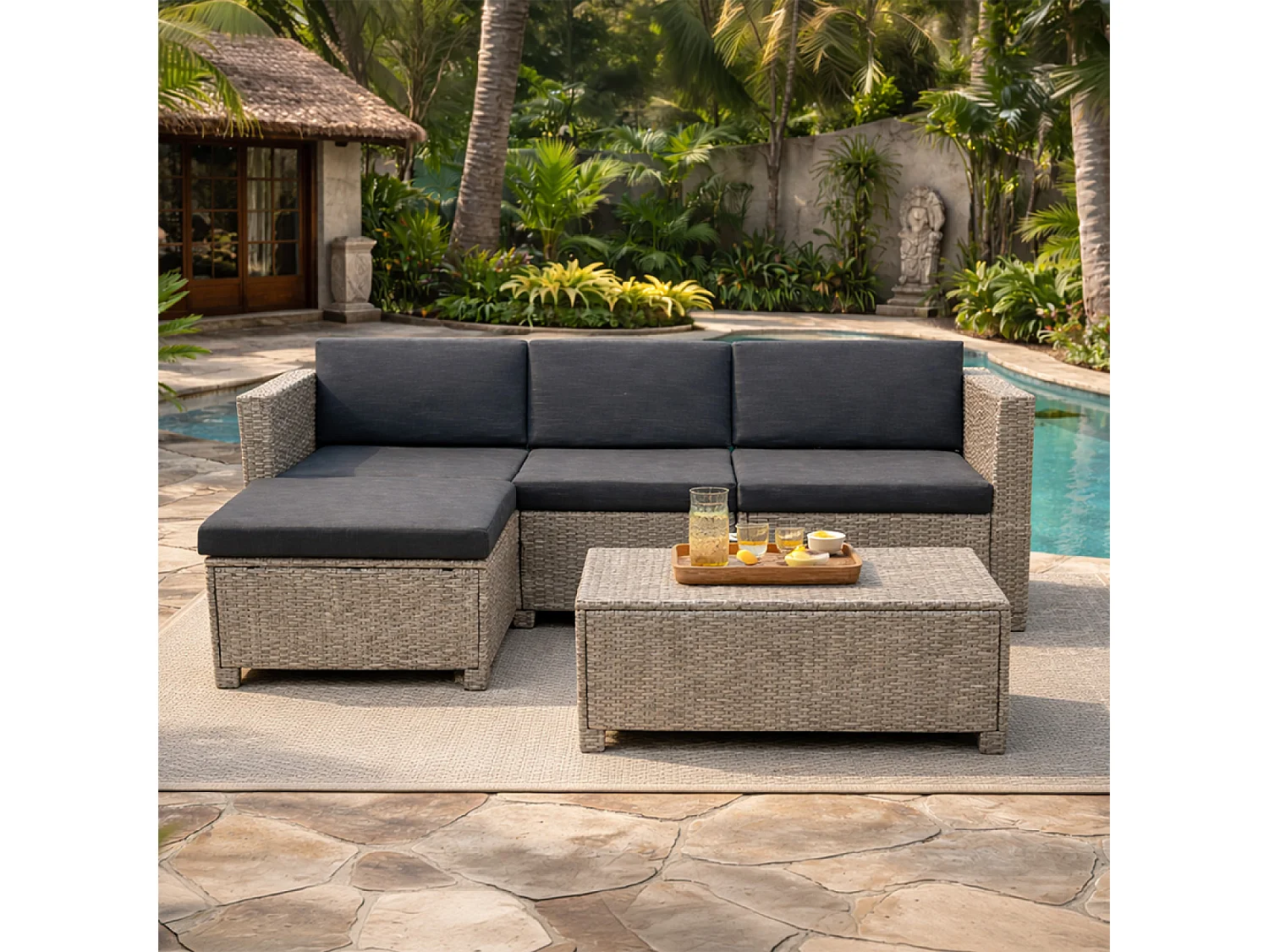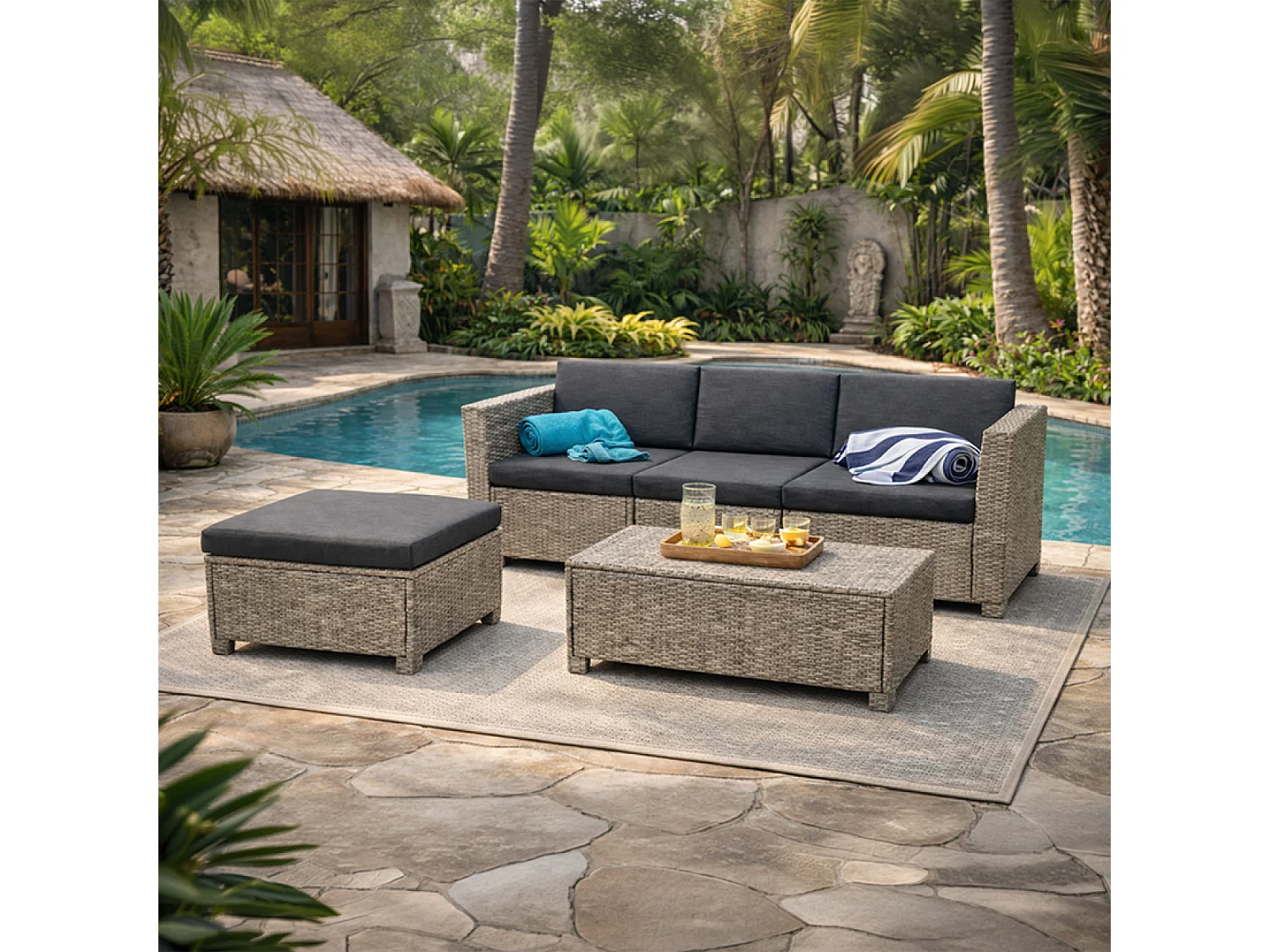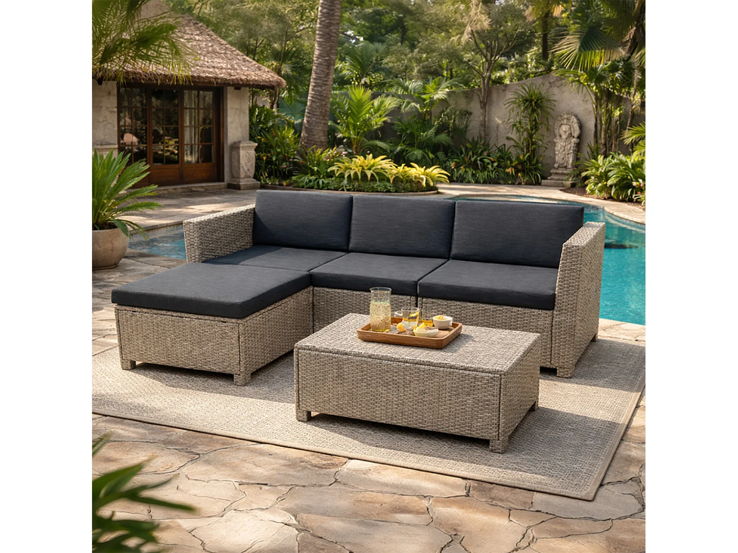 Salon de jardin 4 places en résine tressée gris et noir BALLENY