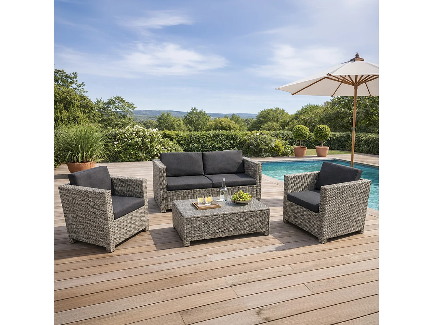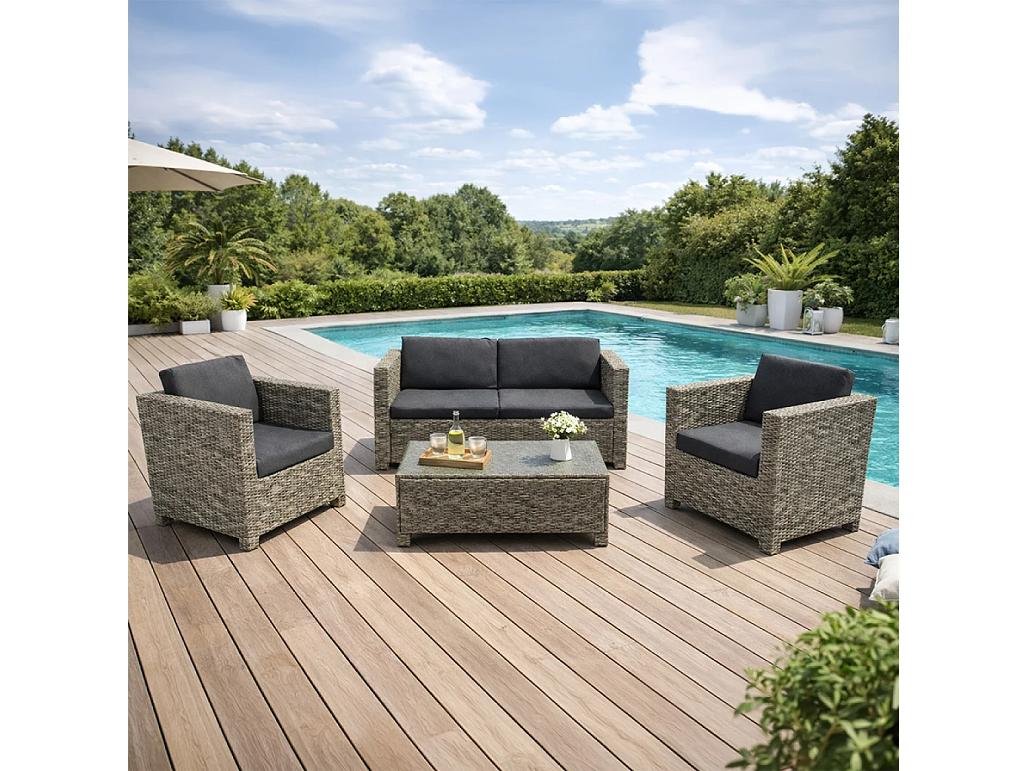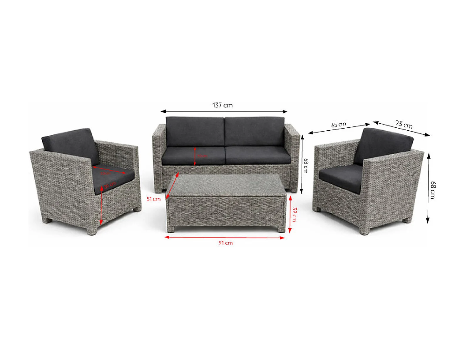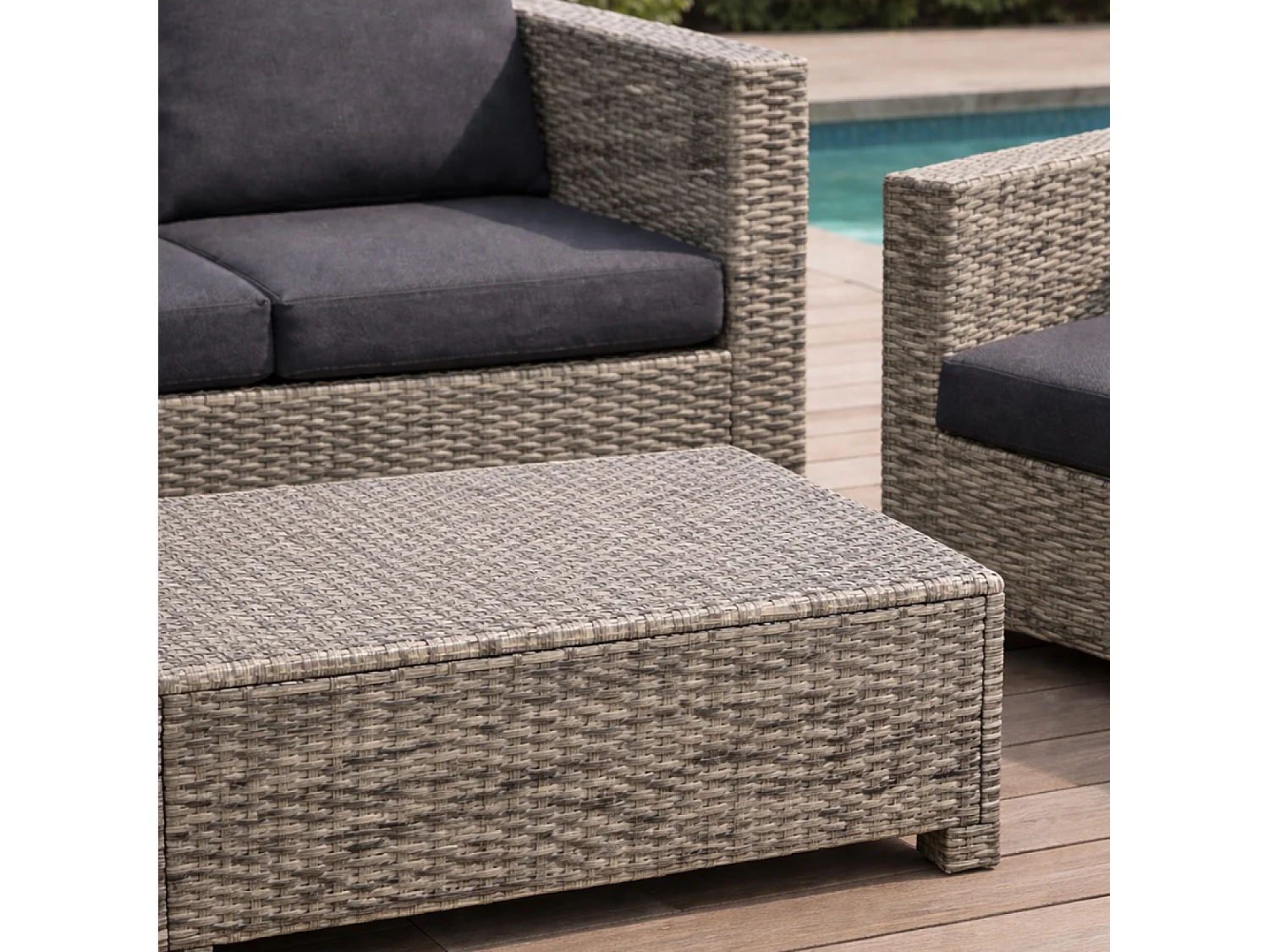 Salon de jardin 4 places en résine tressée gris et noir SOCOTRA
