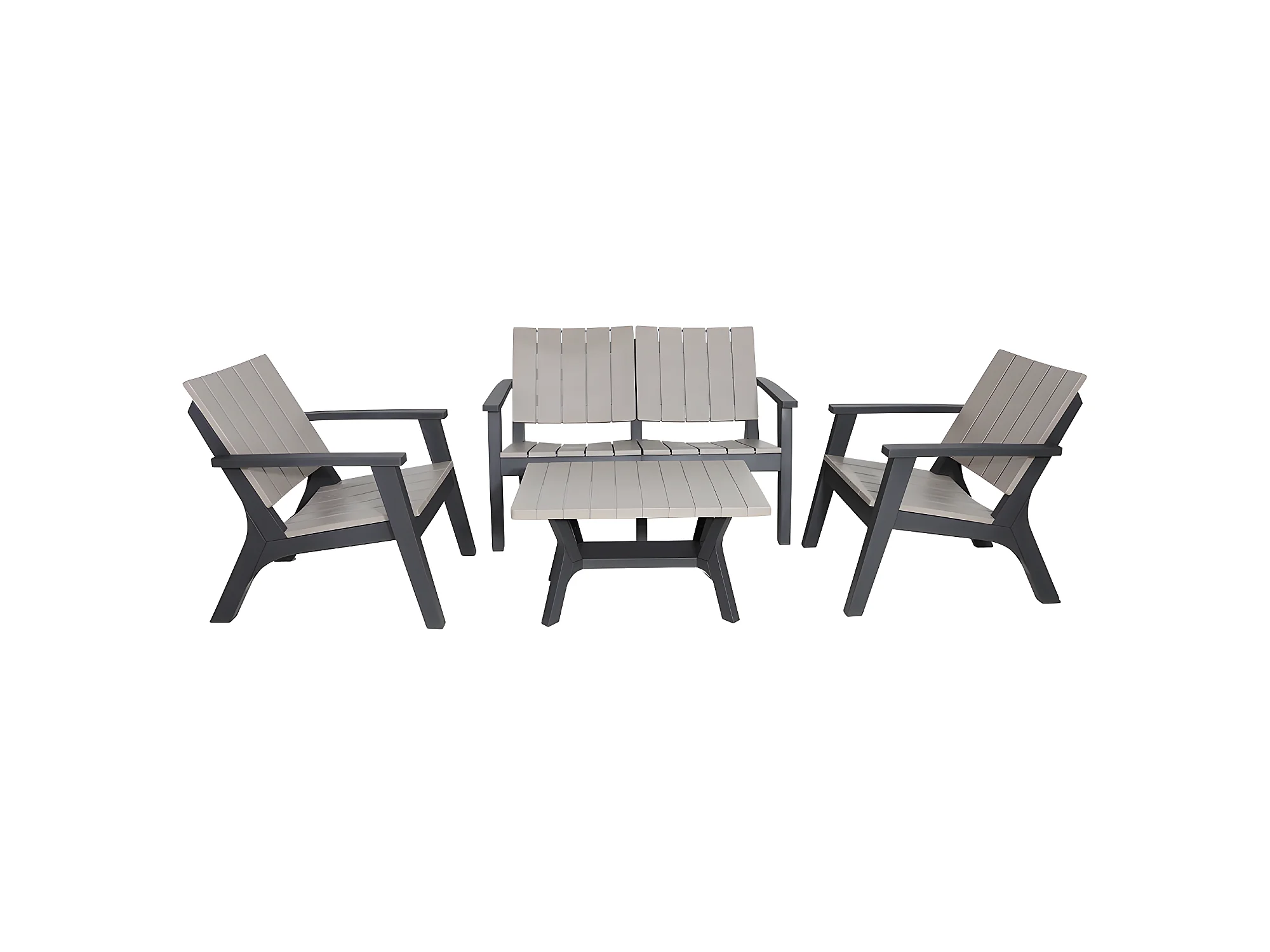 Salon de jardin 4 places résine injectée CANCUN gris et noir