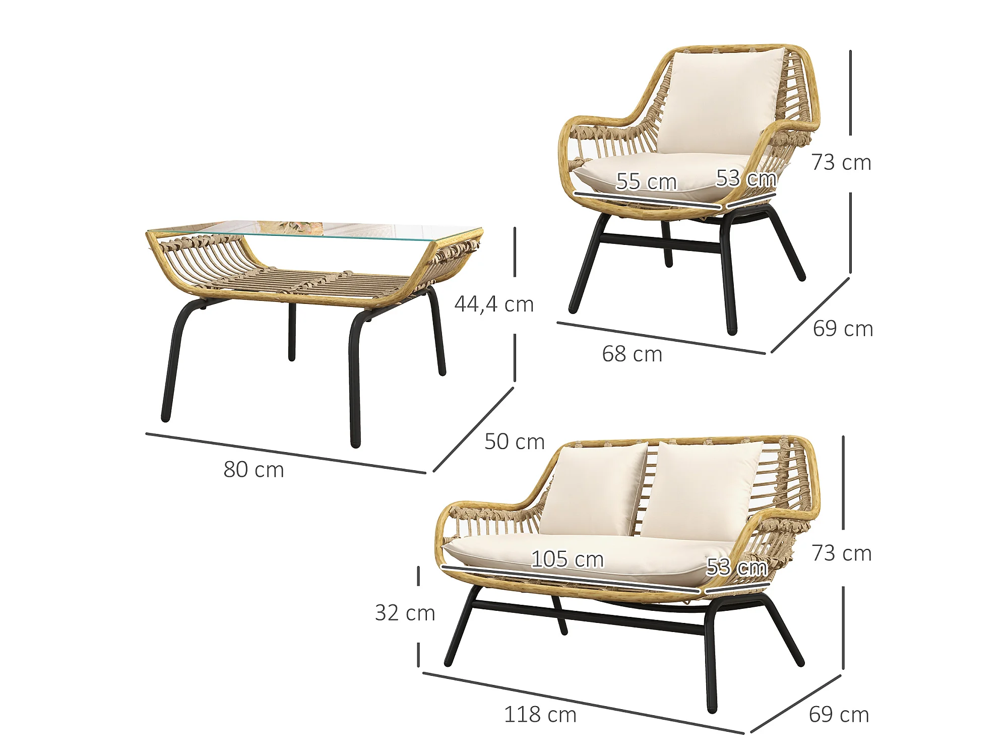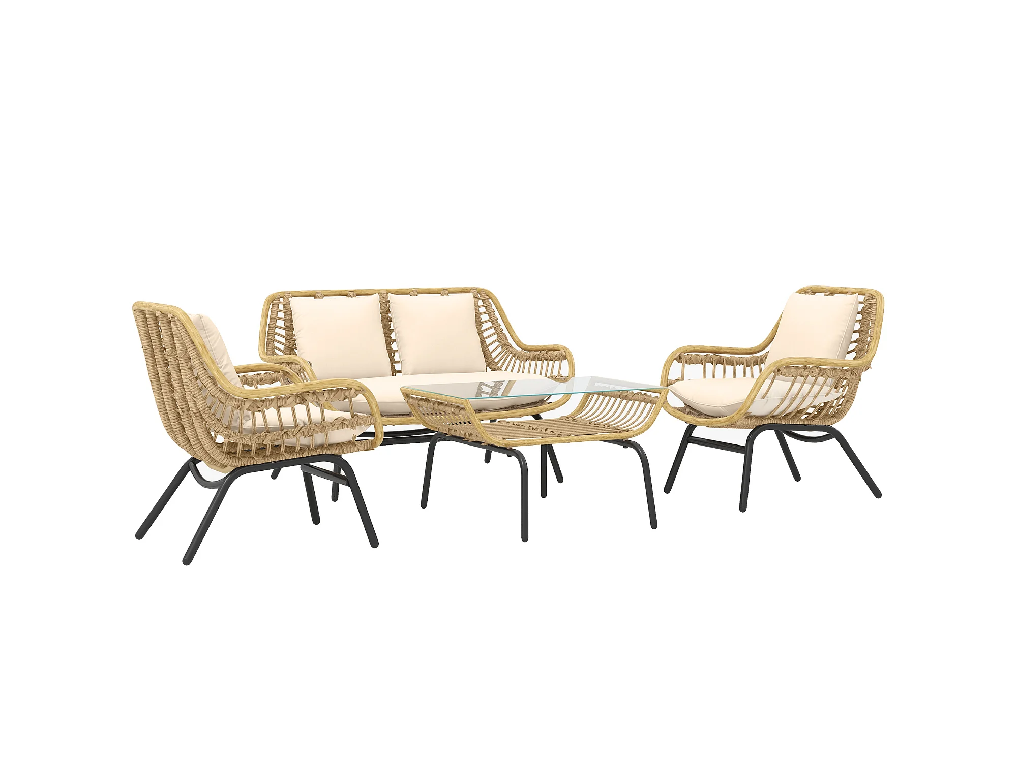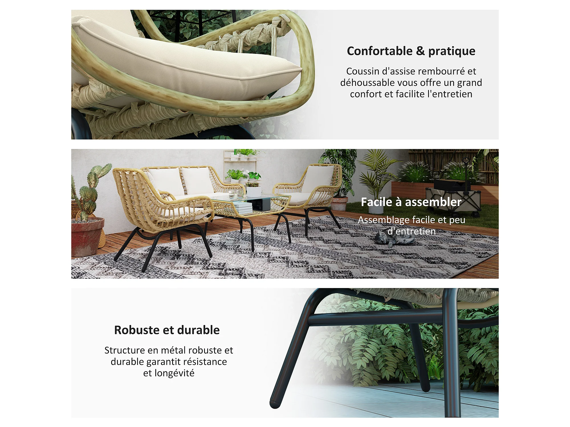 Salon de jardin 4 places – Style exotique – Coussins inclus