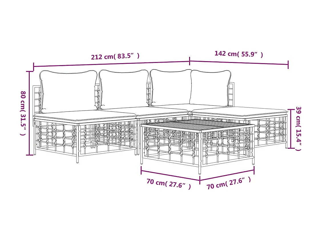 Salon de jardin 5 pcs avec coussins anthracite résine tressée