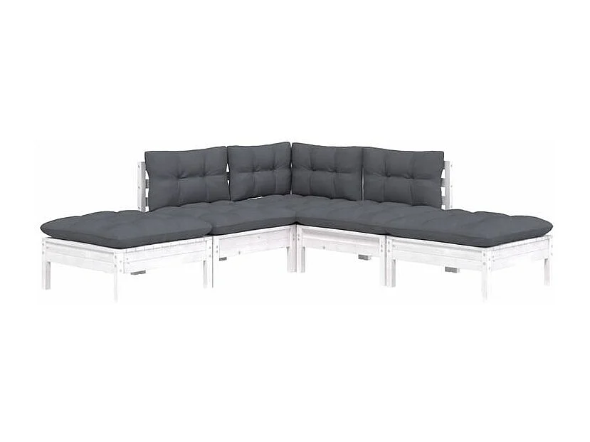 Salon de jardin 5 pcs avec coussins blanc bois de pin