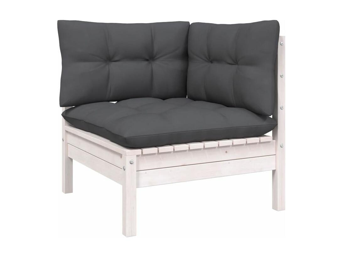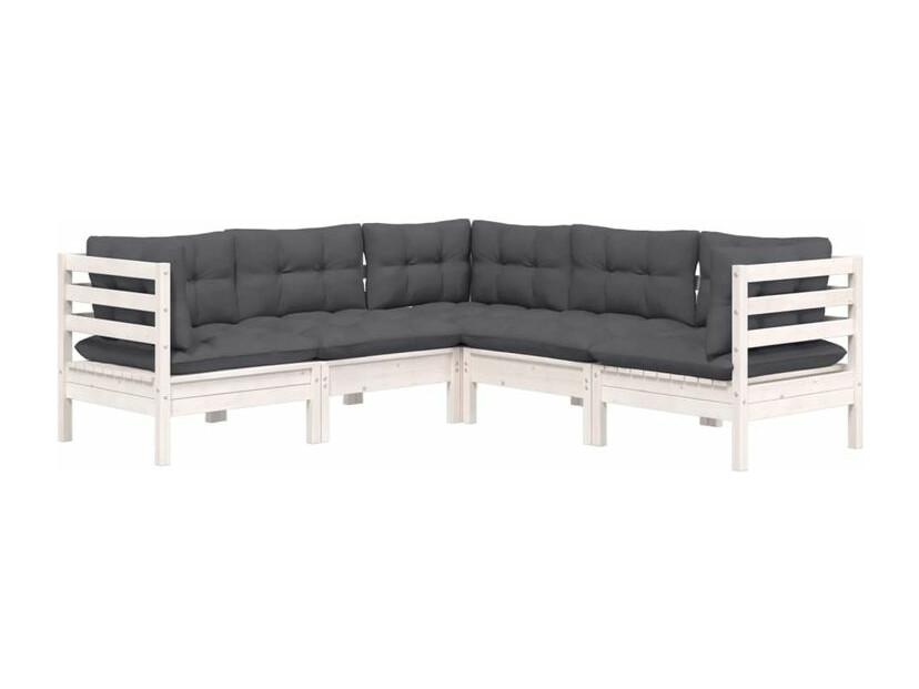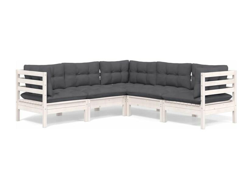Salon de jardin 5 pcs avec coussins blanc bois de pin solide