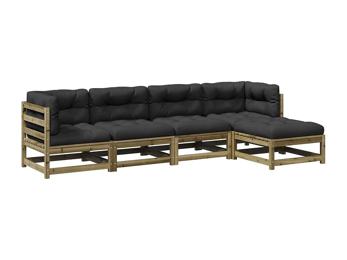 Salon de jardin 5 pcs avec coussins bois de pin imprégné
