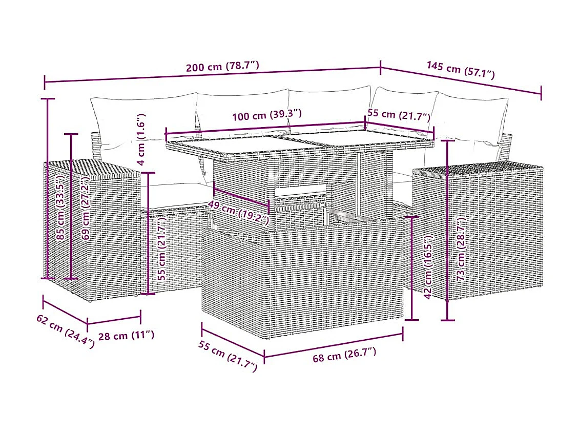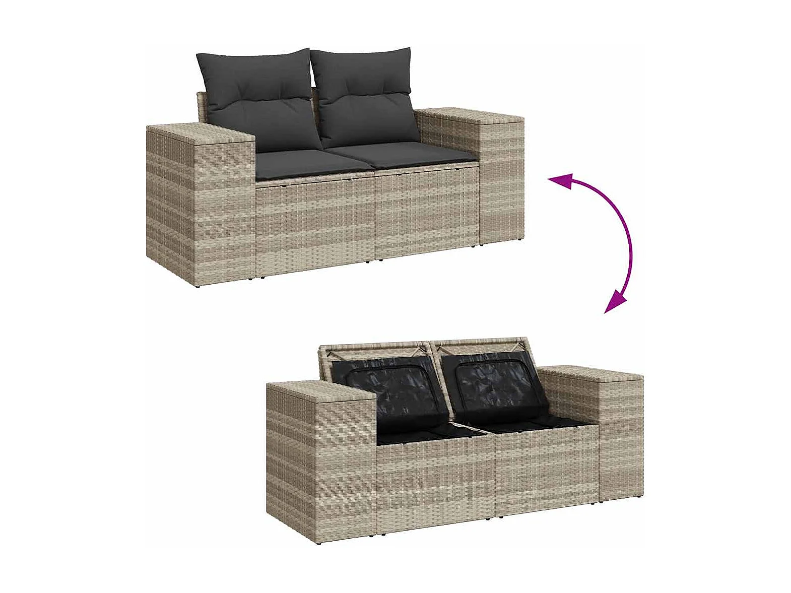 Salon de jardin 5 pcs avec coussins gris clair résine tressée