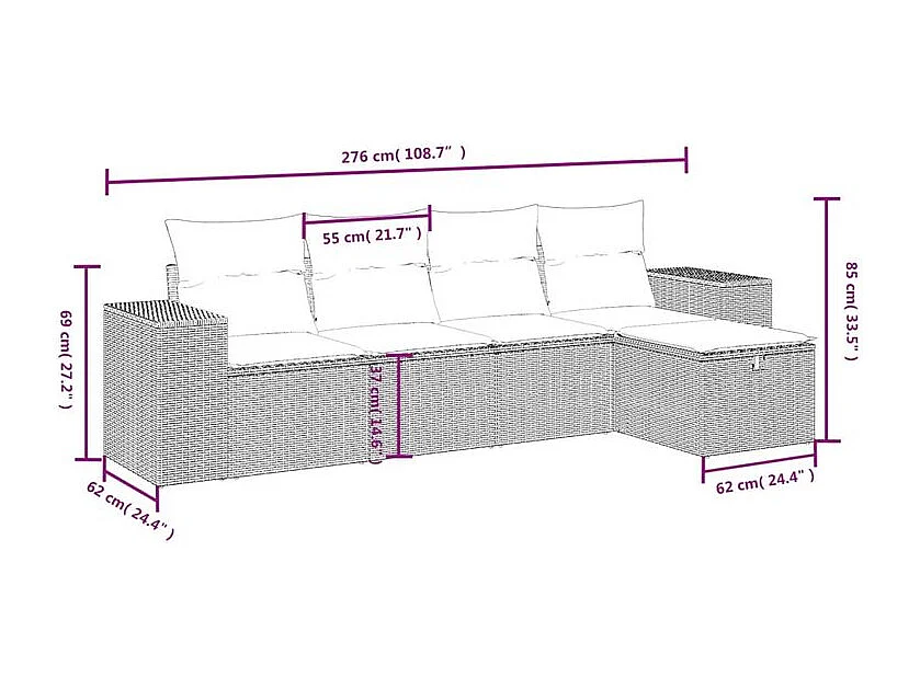 Salon de jardin 5 pcs avec coussins gris clair résine tressée
