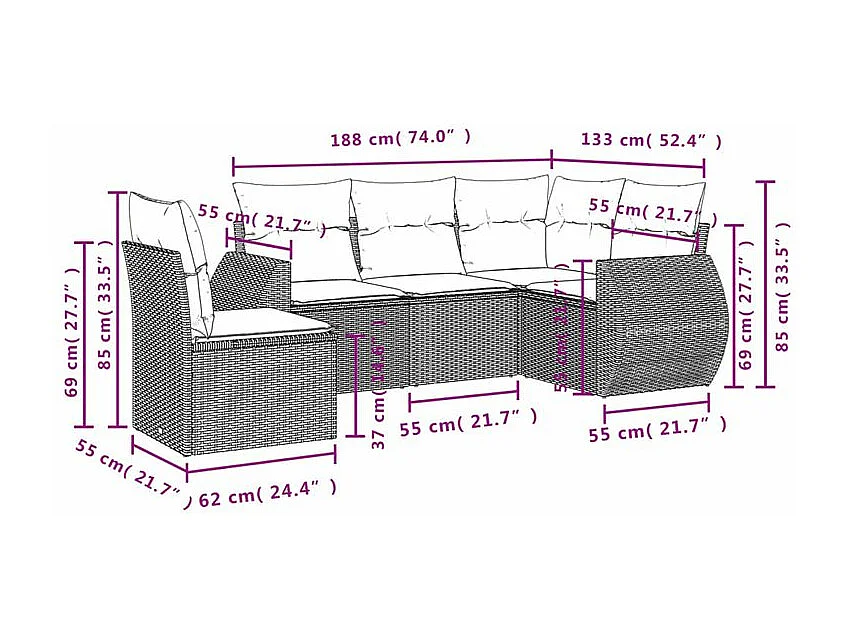 Salon de jardin 5 pcs avec coussins gris clair résine tressée