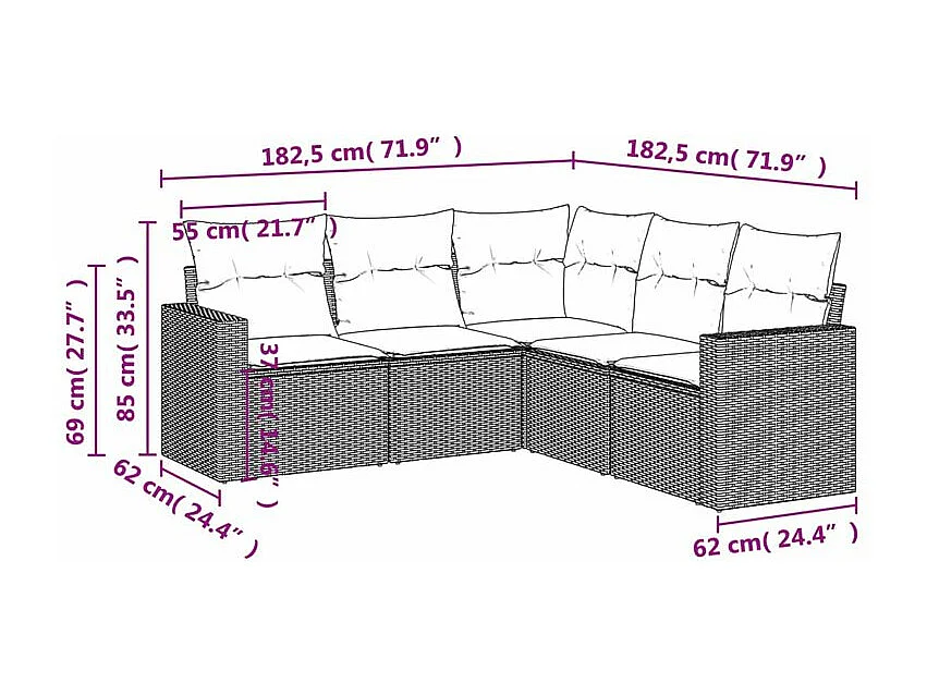 Salon de jardin 5 pcs avec coussins gris clair résine tressée