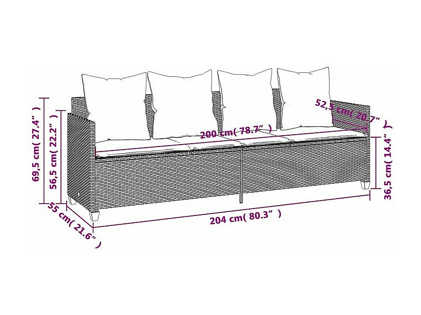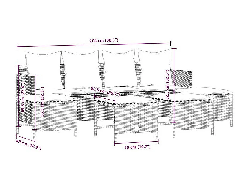 Salon de jardin 5 pcs avec coussins gris clair résine tressée