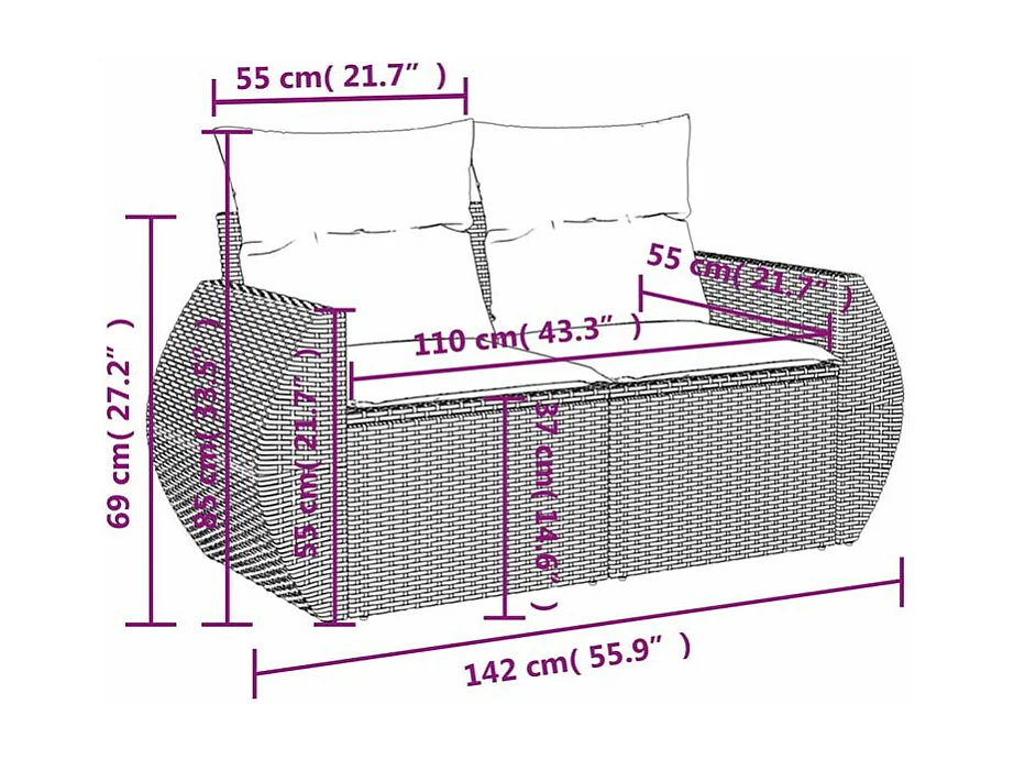 Salon de jardin 5 pcs avec coussins gris clair résine tressée