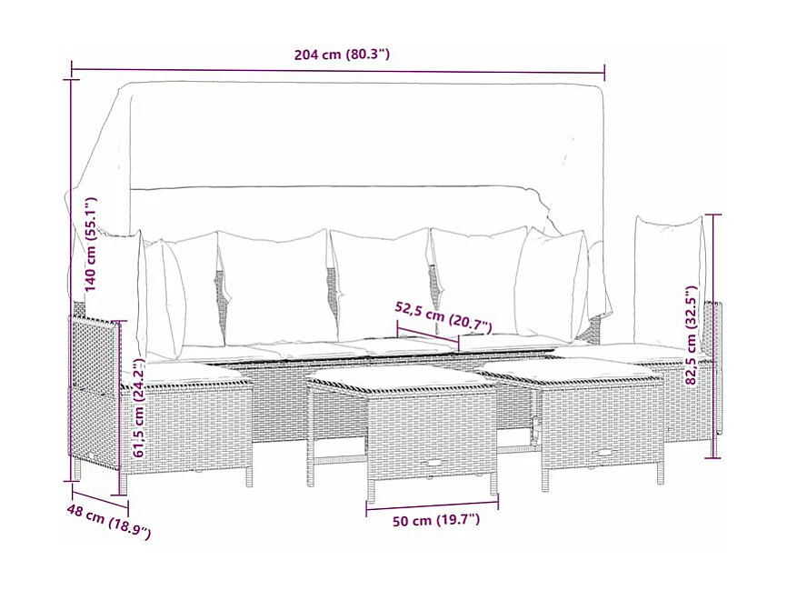 Salon de jardin 5 pcs avec coussins gris clair résine tressée