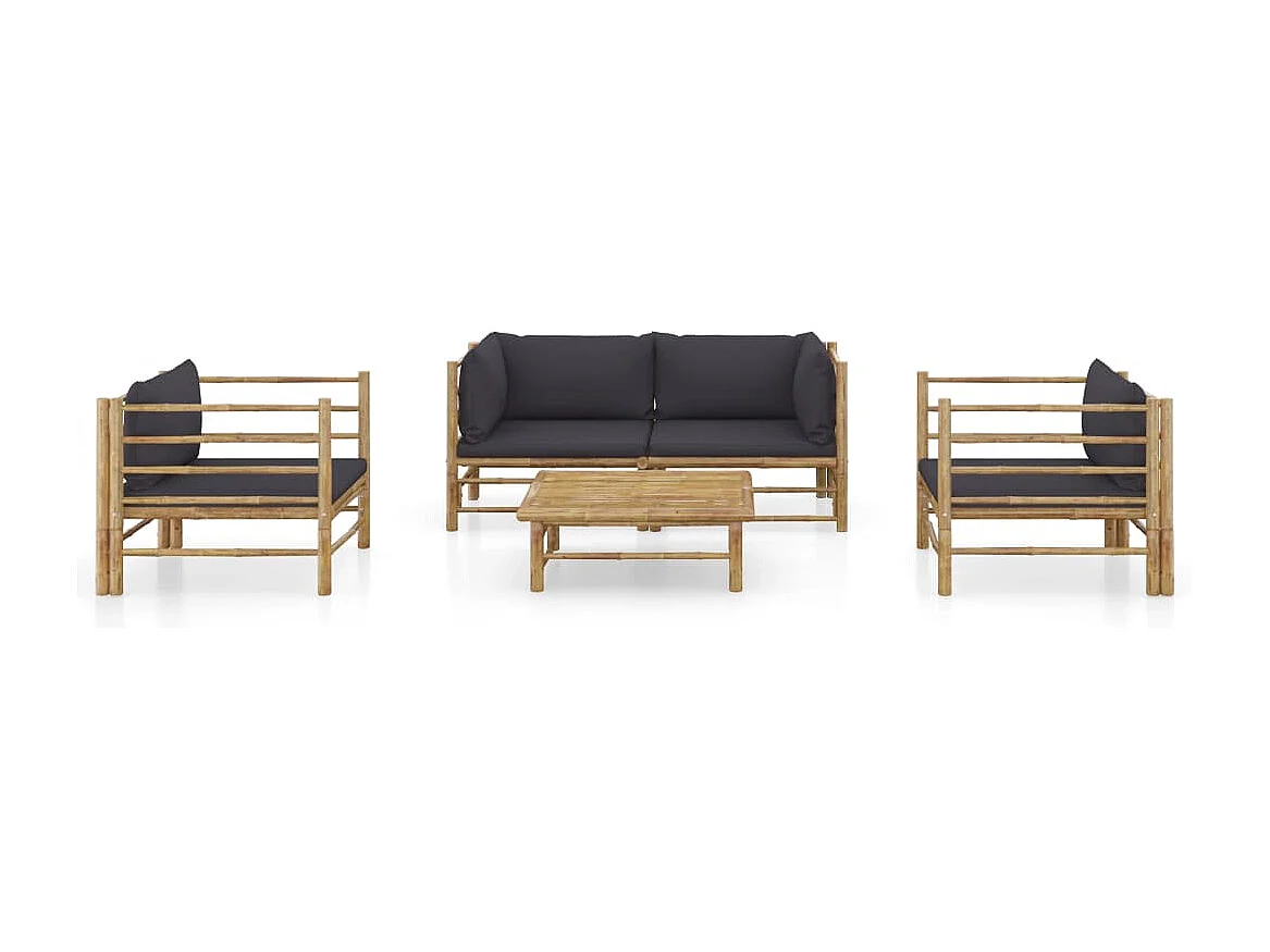 Salon de jardin 5 pcs avec coussins gris foncé Bambou 3