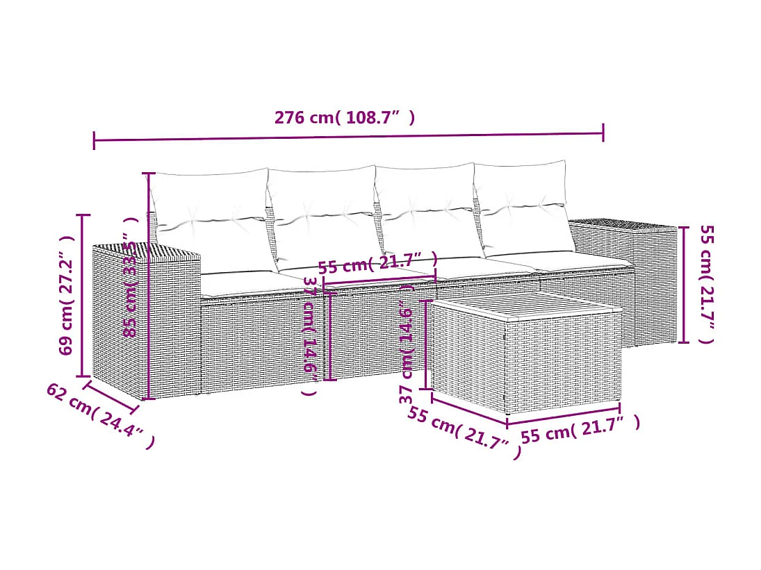 Salon de jardin 5 pcs avec coussins gris résine tressée