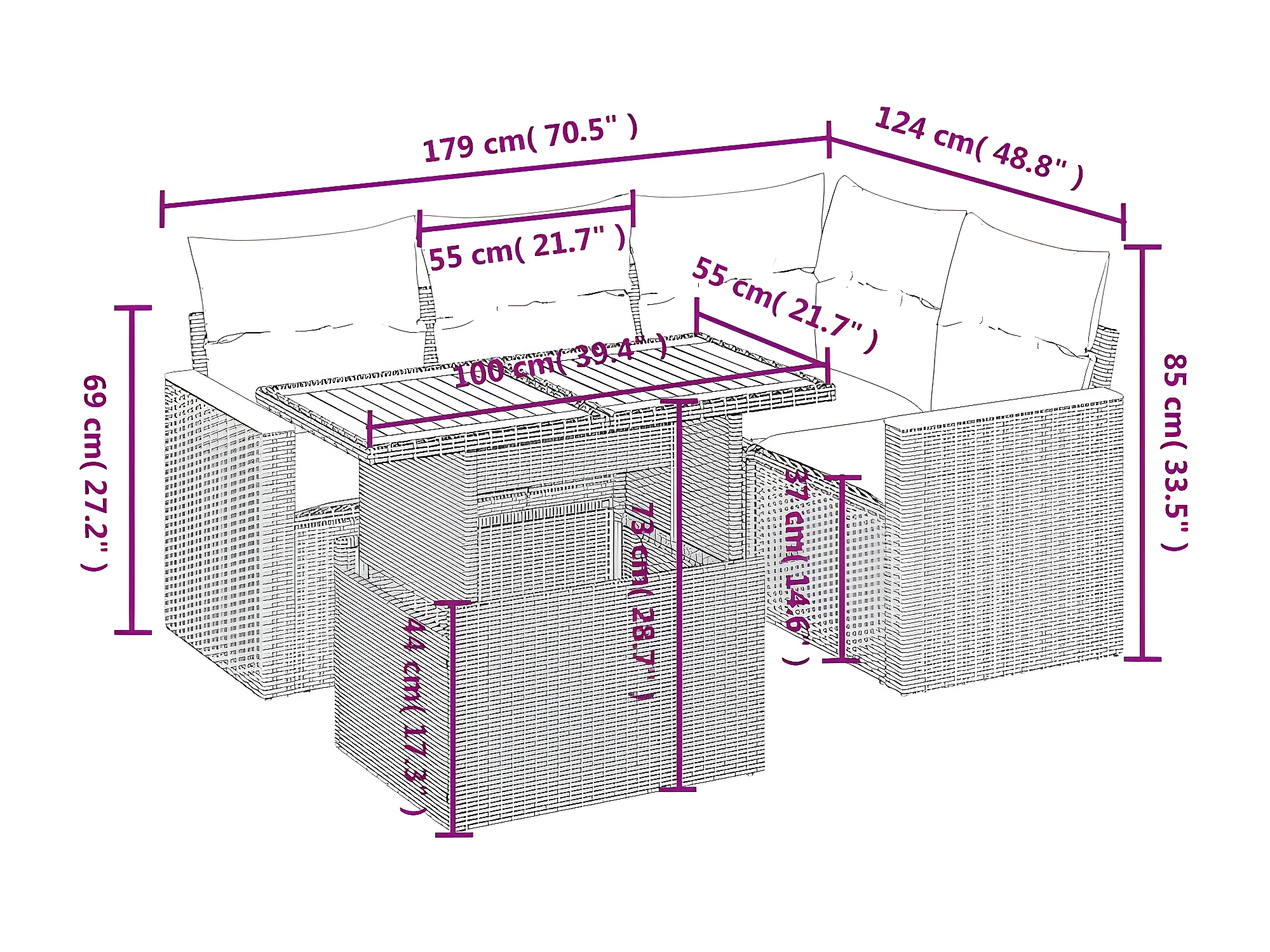 Salon de jardin 5 pcs avec coussins gris résine tressée