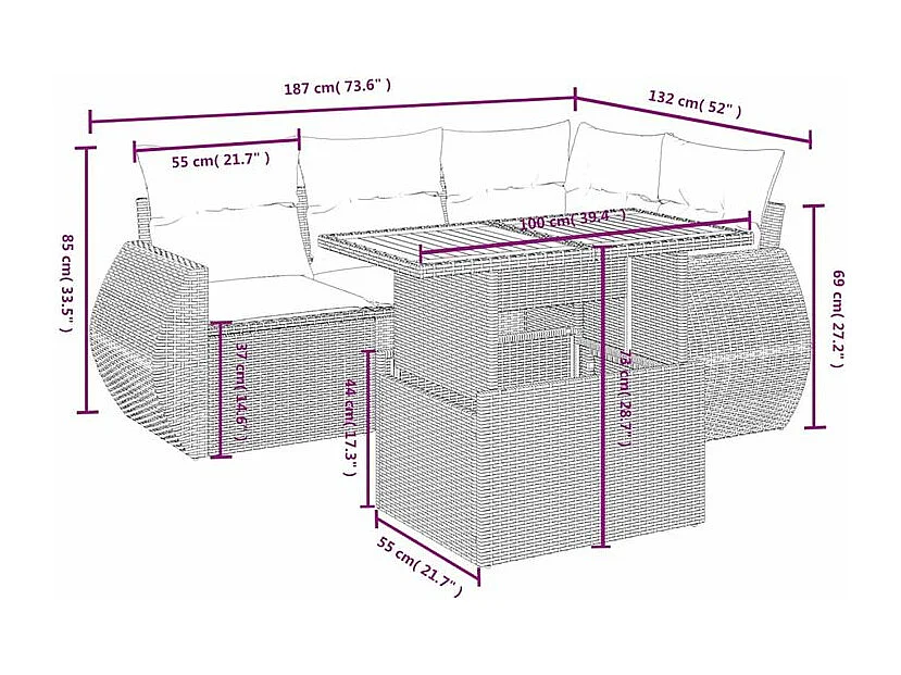Salon de jardin 5 pcs avec coussins gris résine tressée