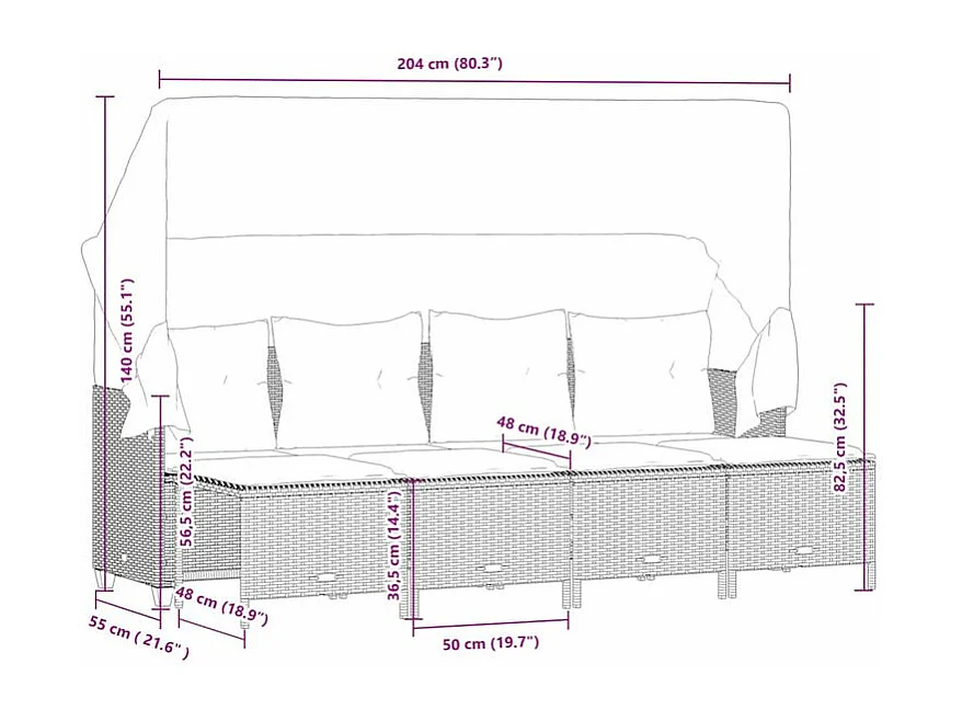 Salon de jardin 5 pcs avec coussins gris résine tressée