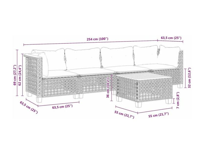 Salon de jardin 5 pcs avec coussins gris résine tressée