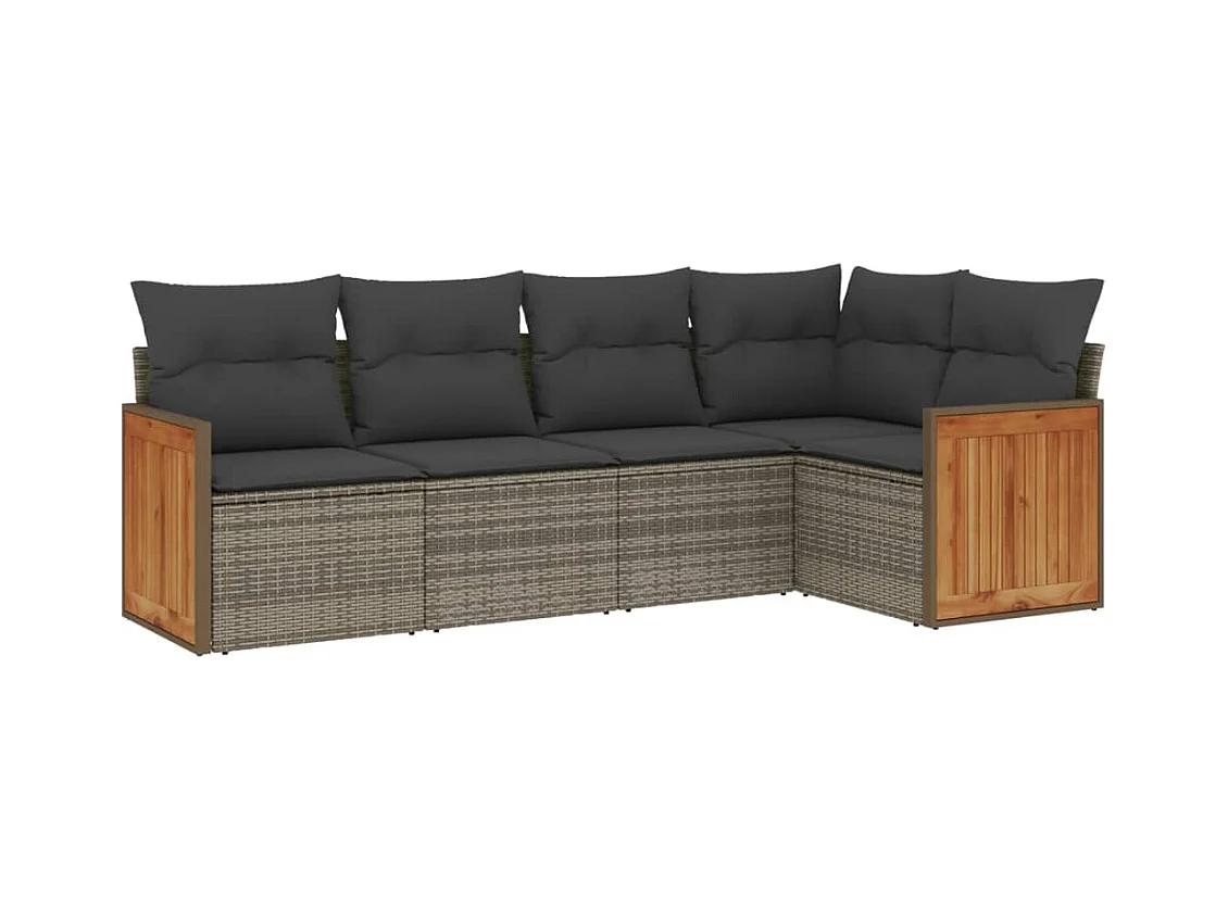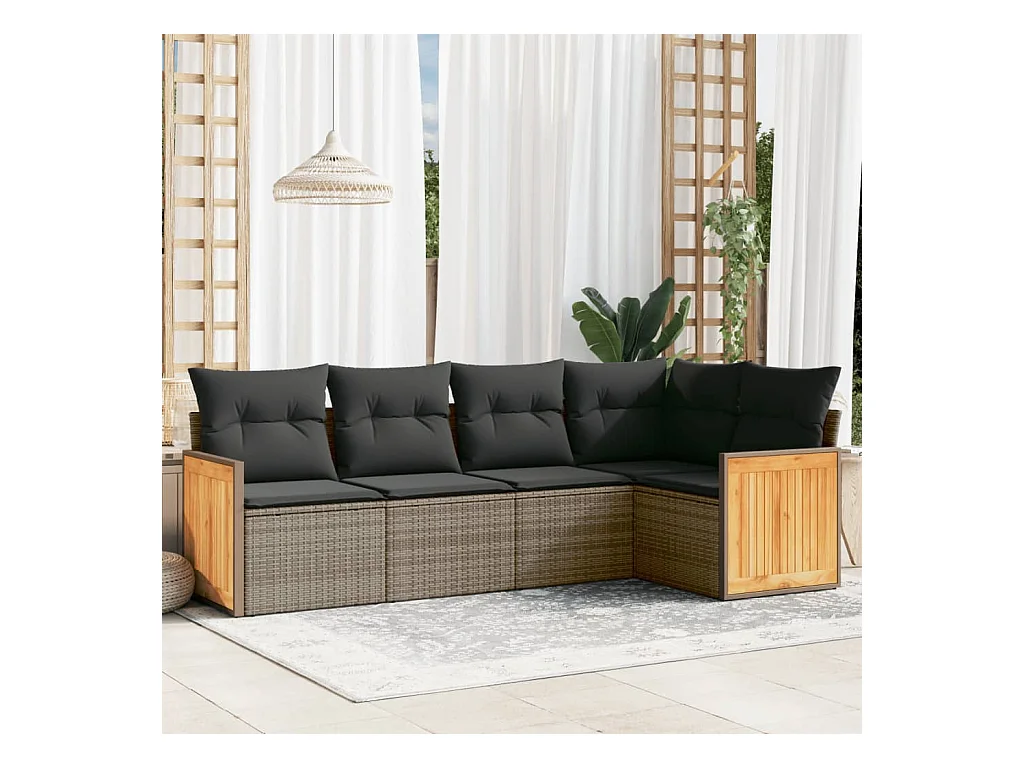 Salon de jardin 5 pcs avec coussins gris résine tressée FR66528