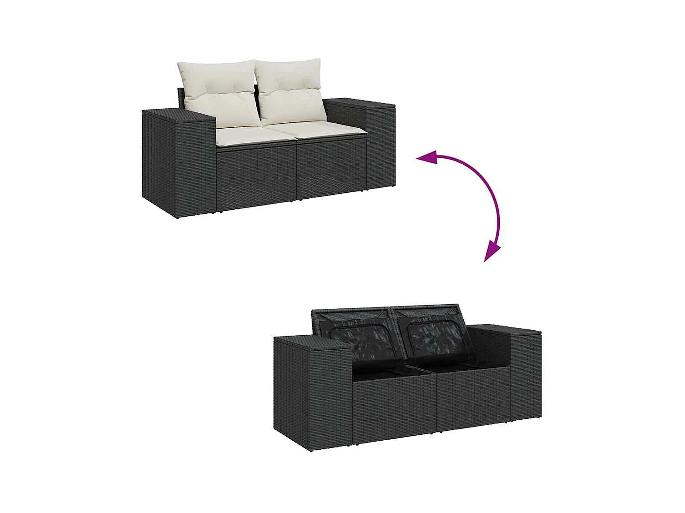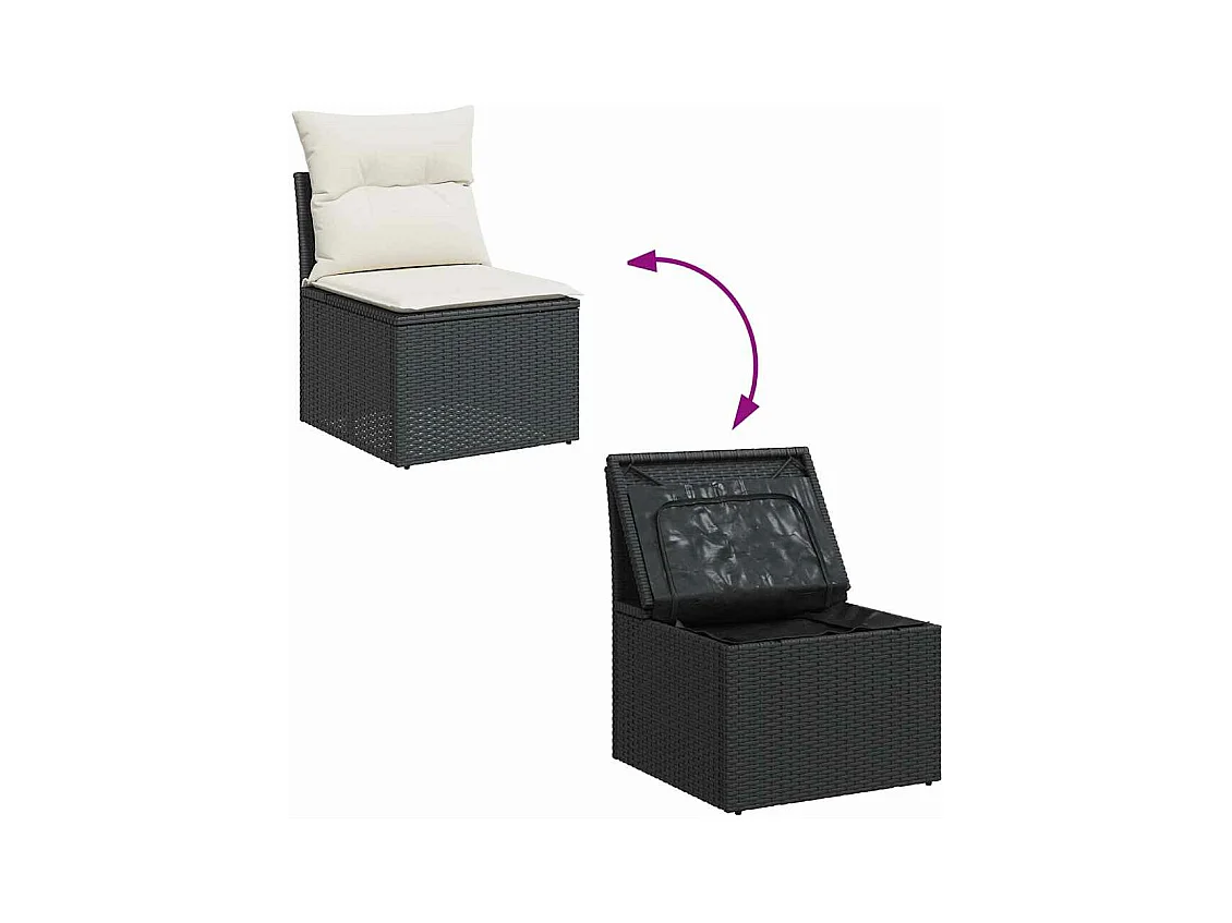 Salon de jardin 5 pcs avec coussins noir résine tressée