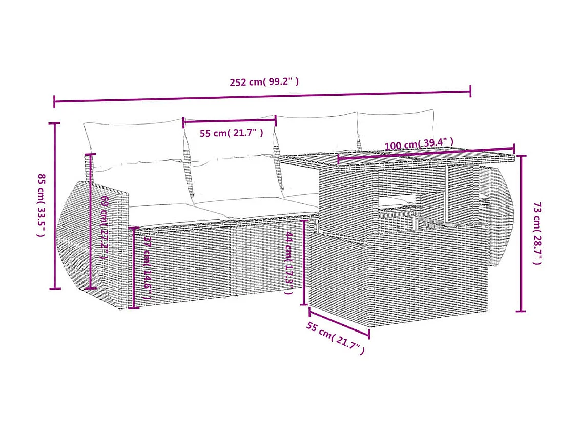 Salon de jardin 5 pcs avec coussins noir résine tressée
