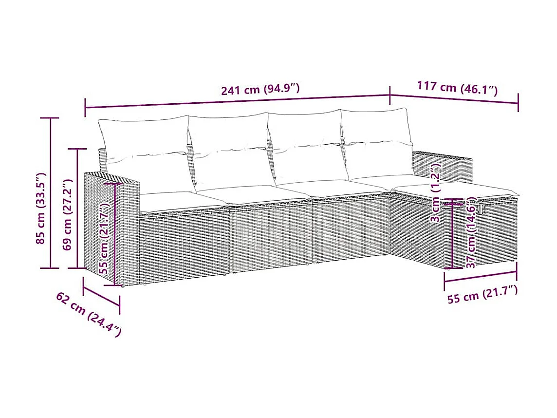 Salon de jardin 5 pcs avec coussins noir résine tressée