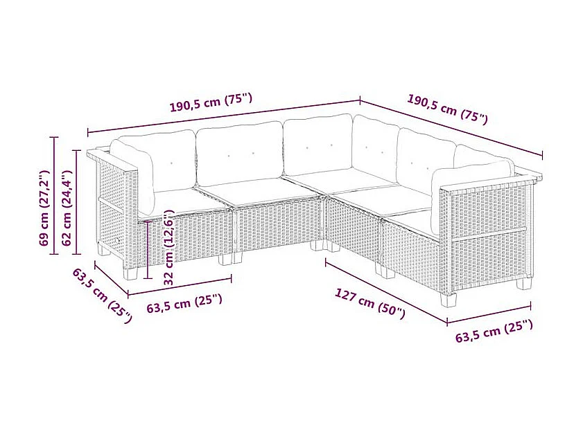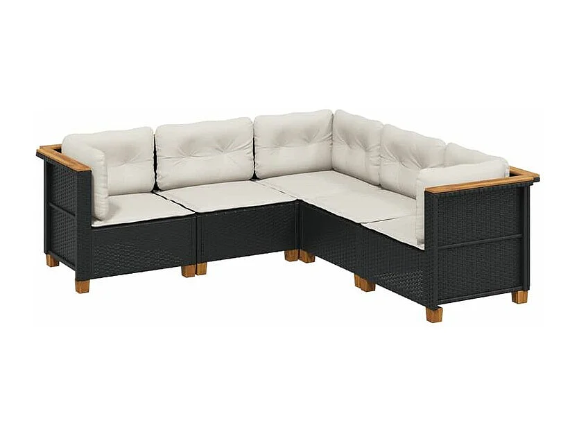 Salon de jardin 5 pcs avec coussins noir résine tressée