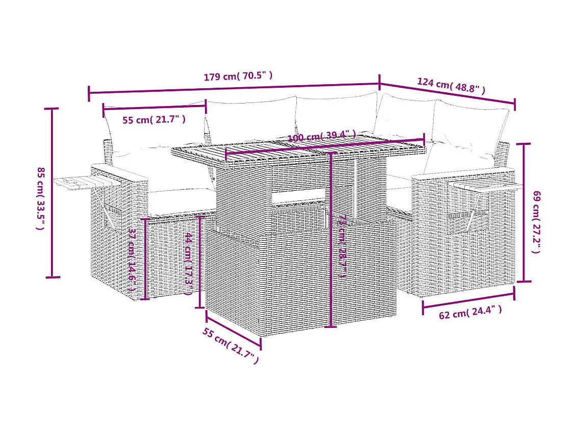 Salon de jardin 5 pcs avec coussins noir résine tressée