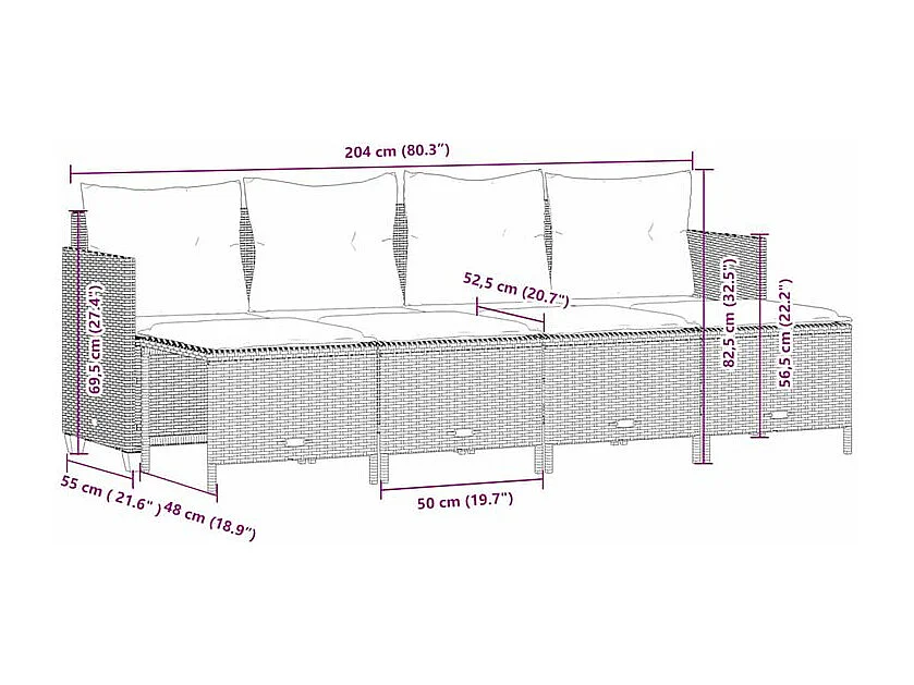 Salon de jardin 5 pcs avec coussins noir résine tressée