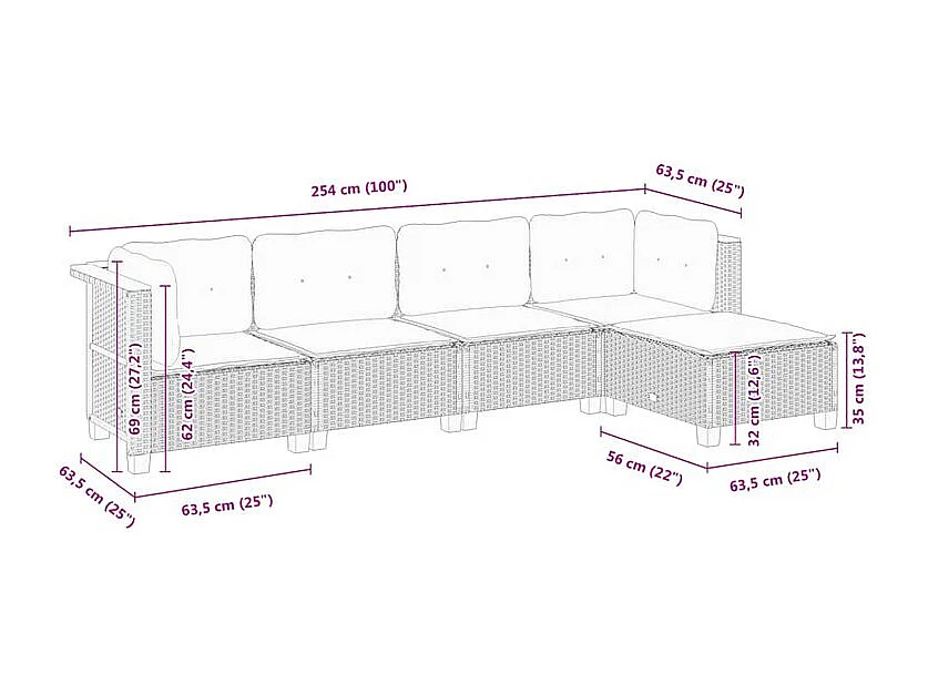 Salon de jardin 5 pcs avec coussins noir résine tressée