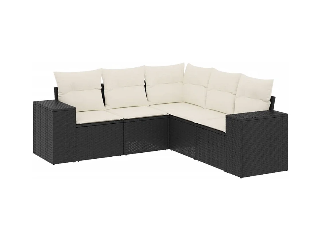 Salon de jardin 5 pcs avec coussins noir résine tressée