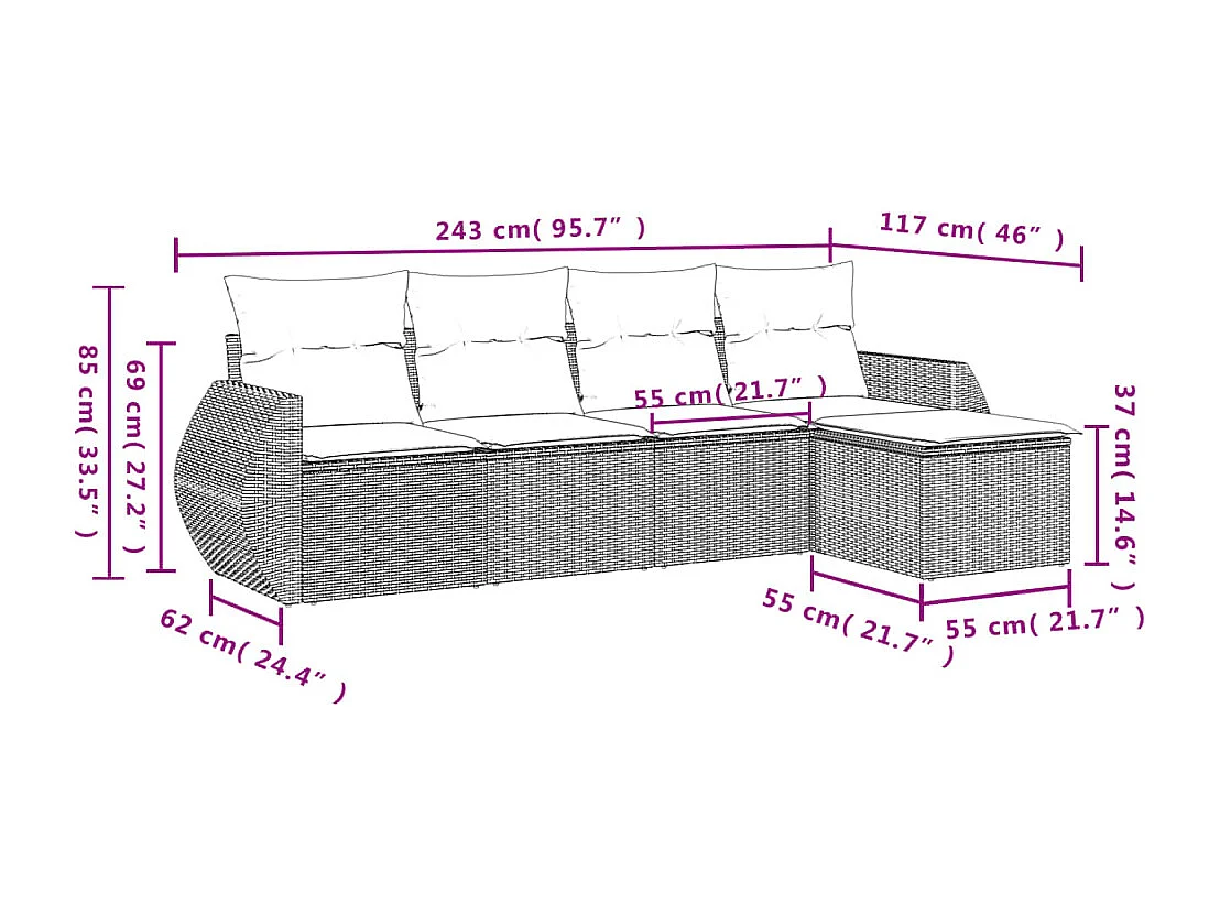 Salon de jardin 5 pcs avec coussins noir résine tressée