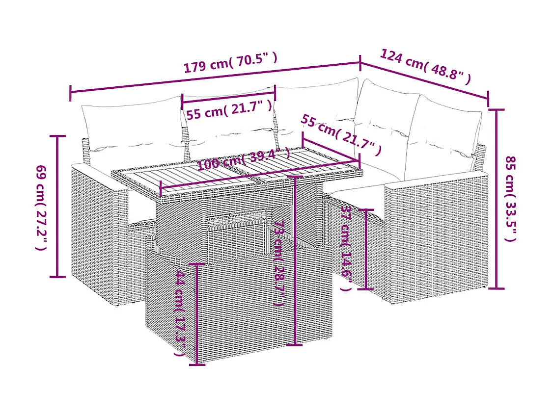 Salon de jardin 5 pcs avec coussins noir résine tressée