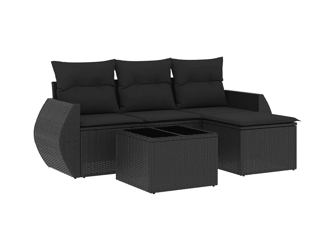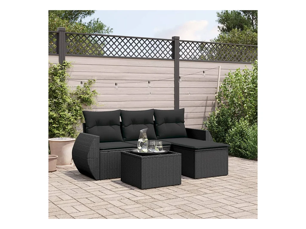 Salon de jardin 5 pcs avec coussins noir résine tressée