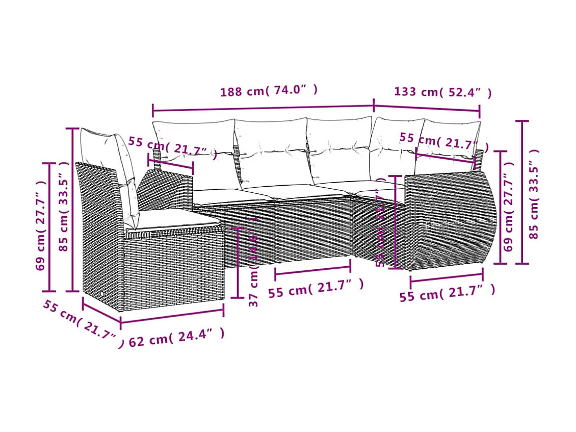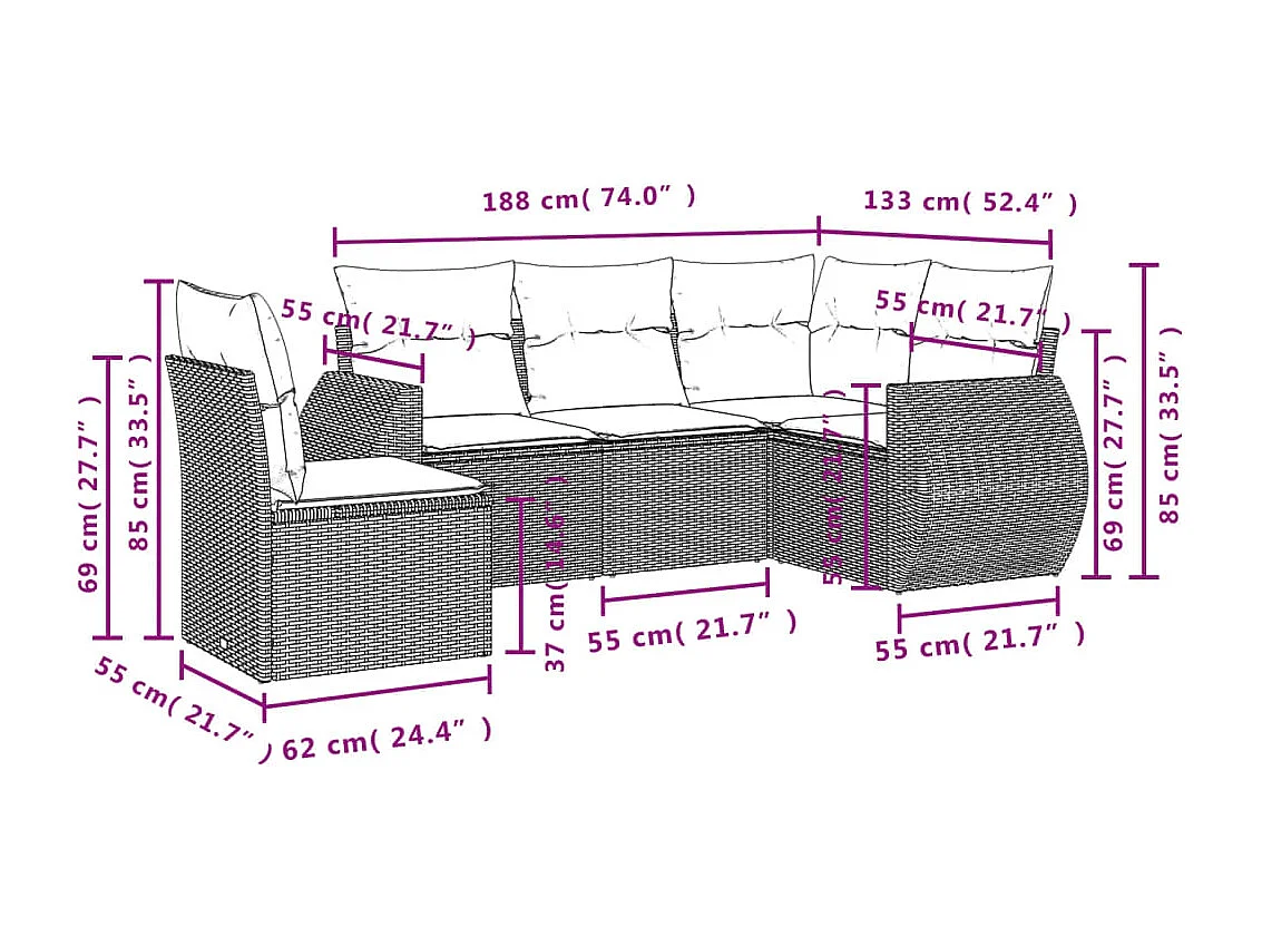 Salon de jardin 5 pcs avec coussins noir résine tressée