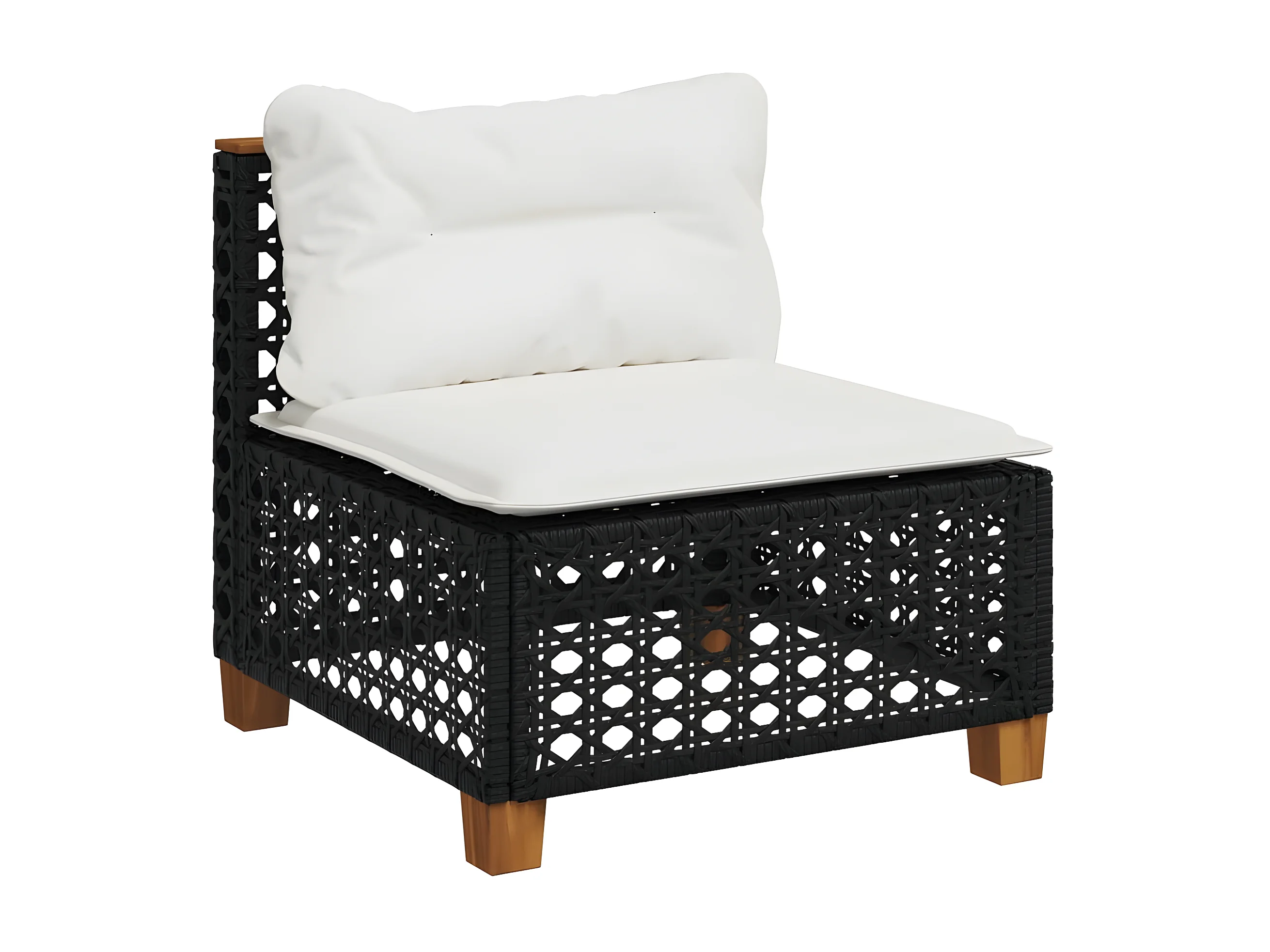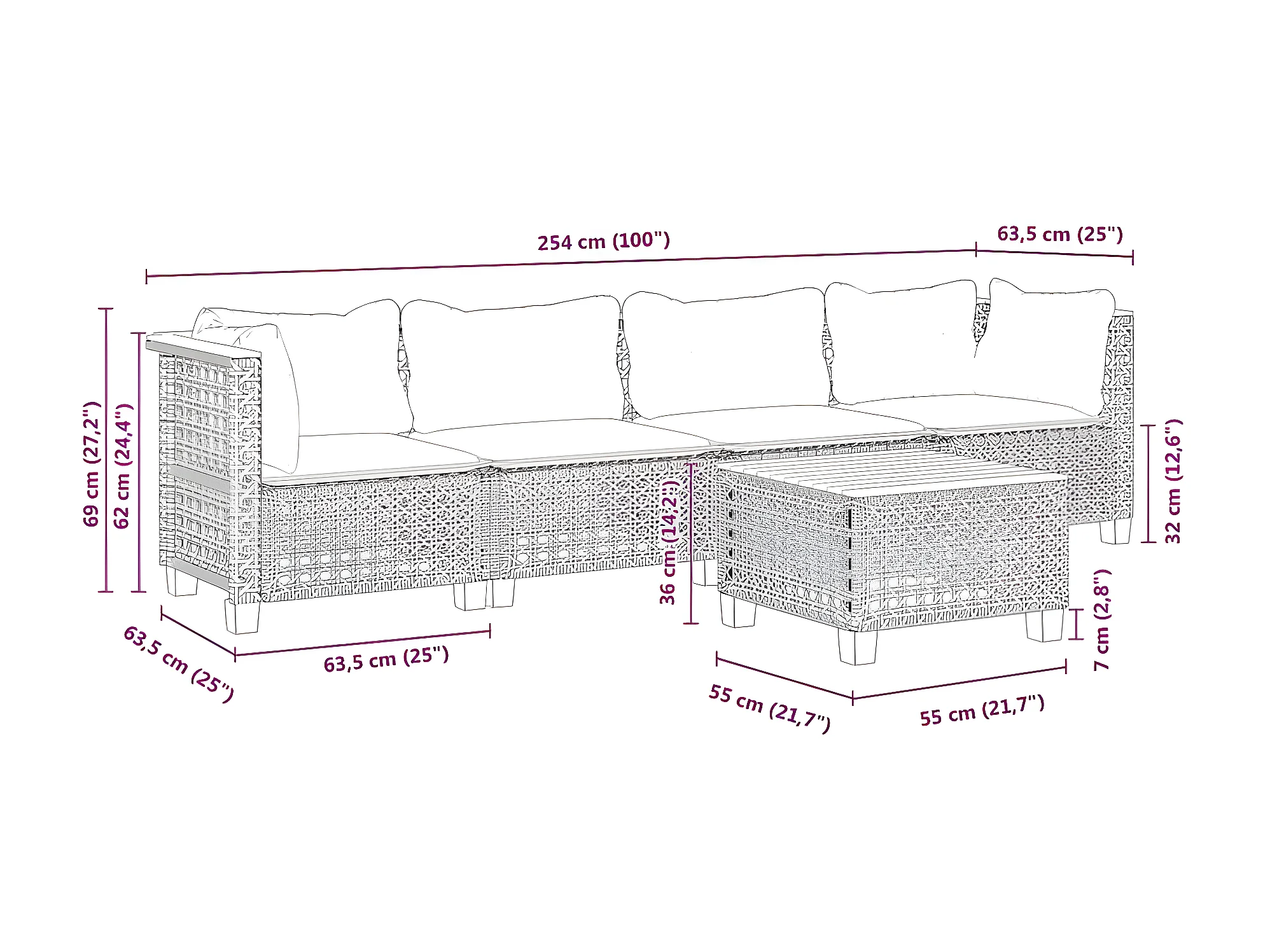 Salon de jardin 5 pcs avec coussins noir résine tressée