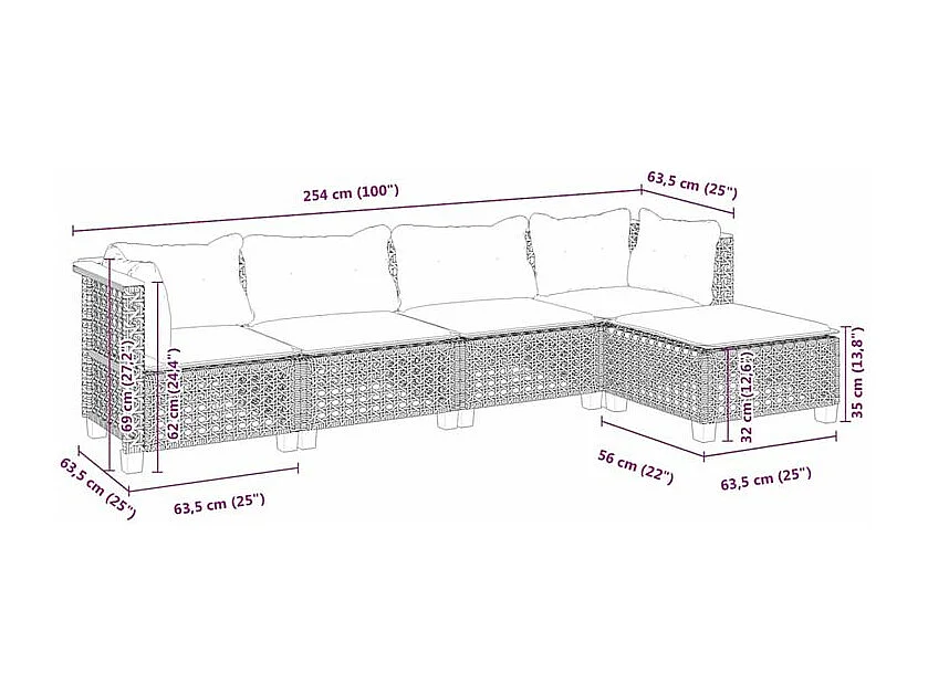 Salon de jardin 5 pcs avec coussins noir résine tressée