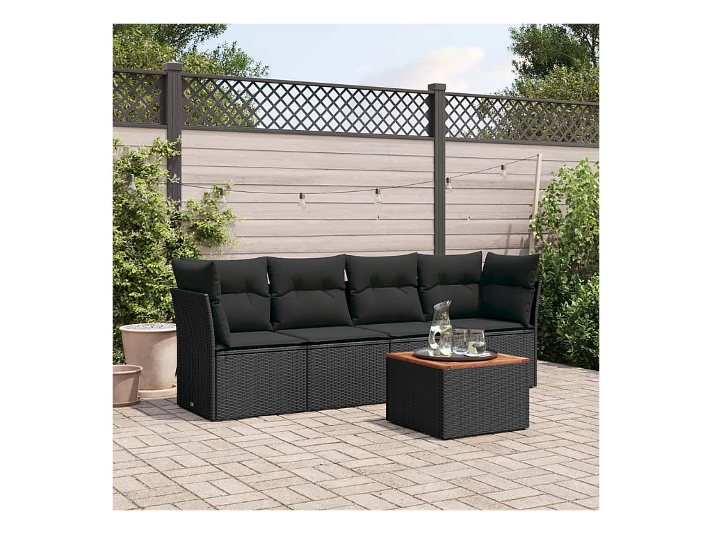 Salon de jardin 5 pcs avec coussins noir résine tressée FR24666