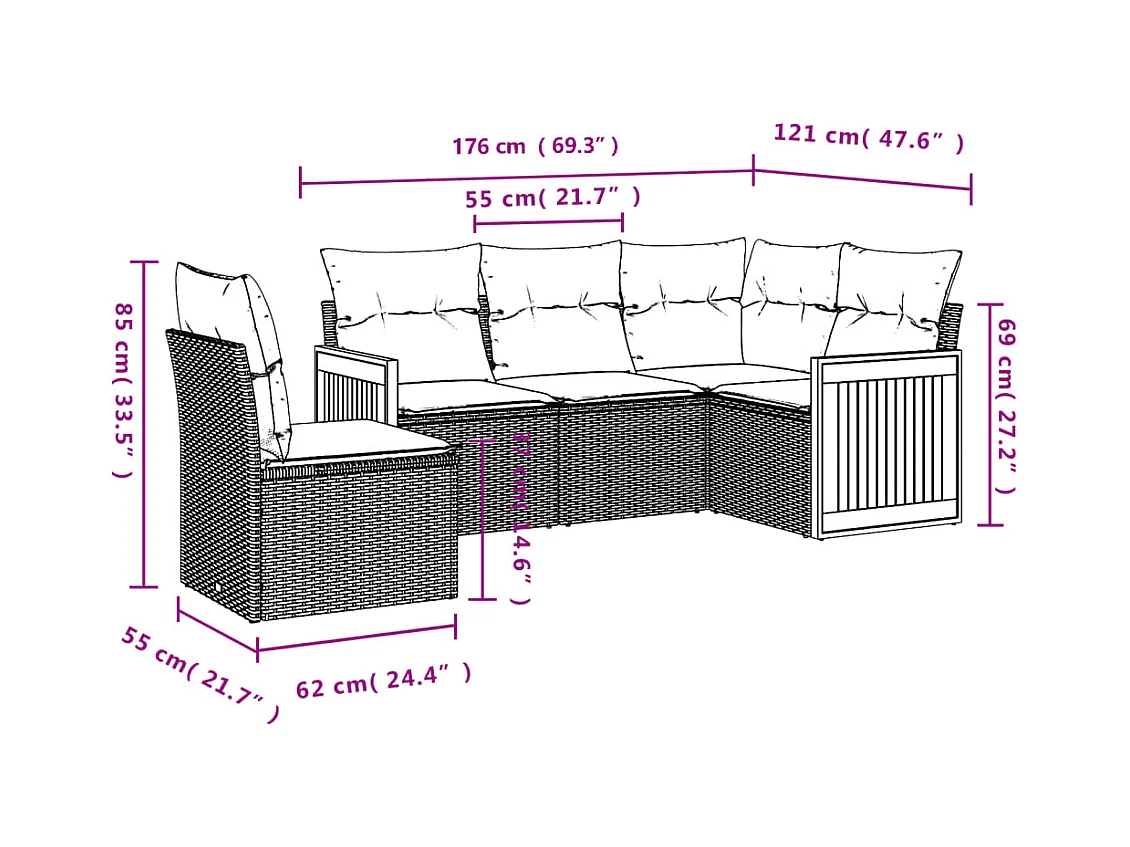 Salon de jardin 5 pcs avec coussins noir résine tressée FR51060