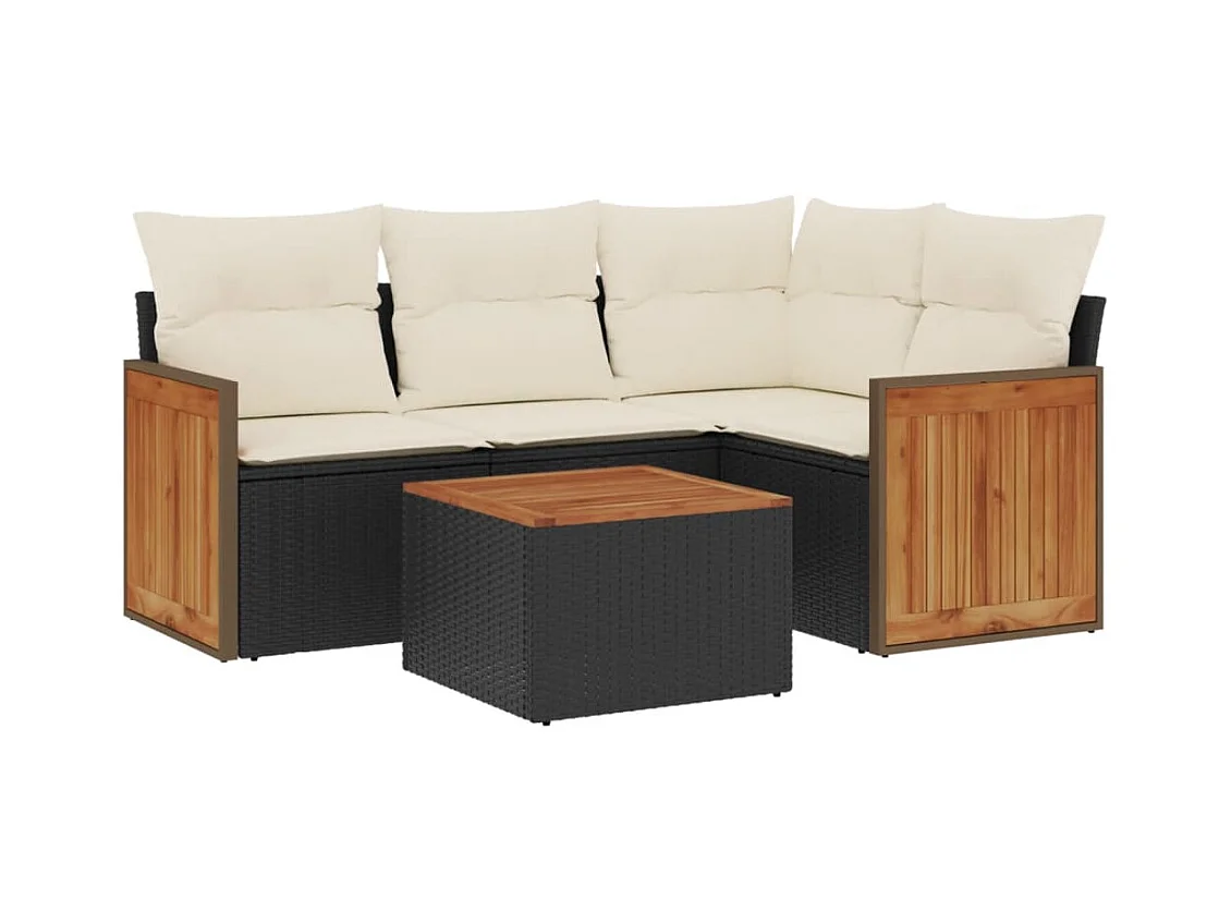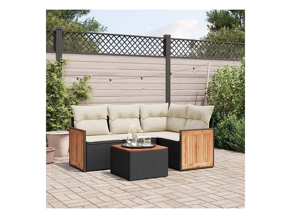 Salon de jardin 5 pcs avec coussins noir résine tressée FR54522